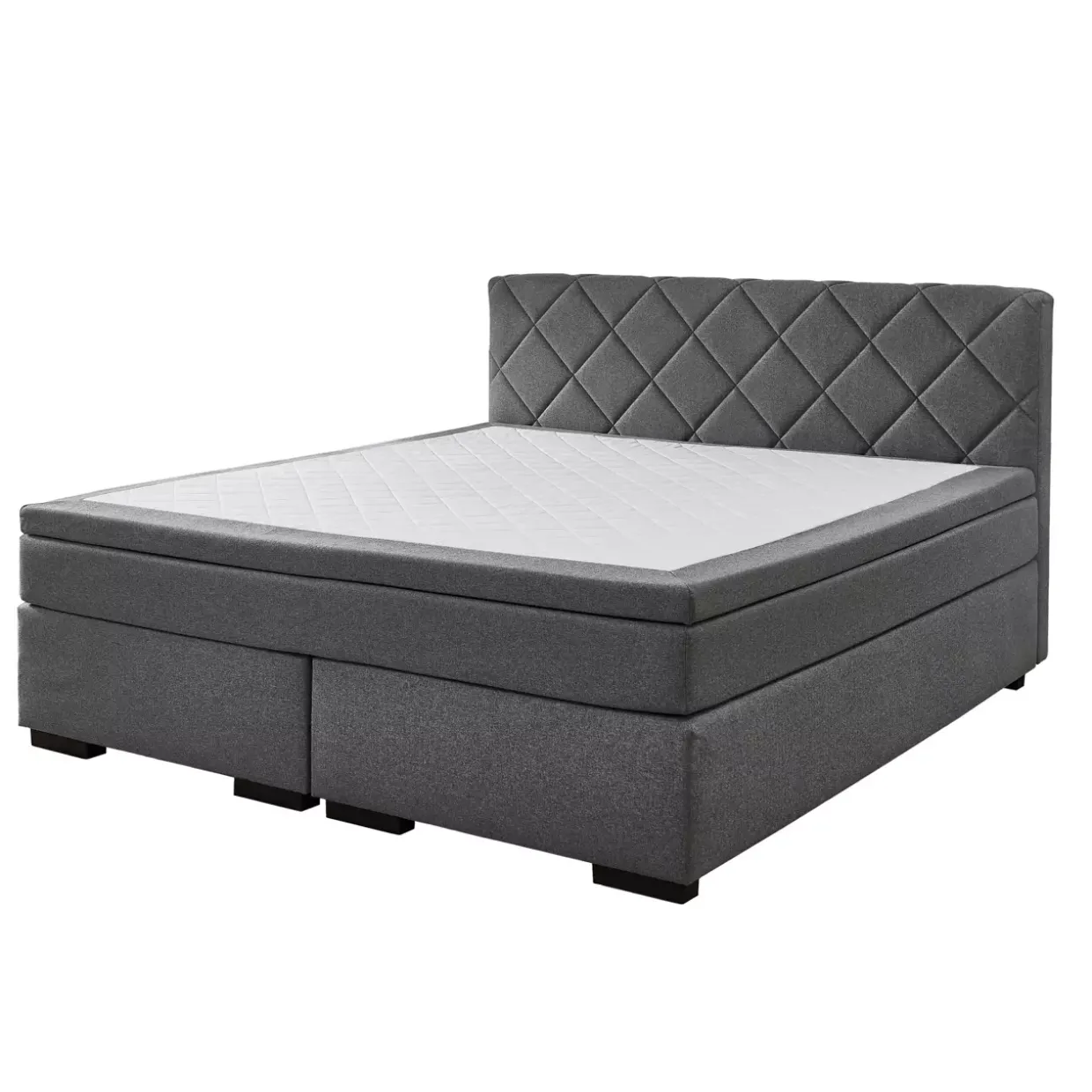 Das Kopfteil mit eleganter Steppung und Abheftungen verleiht dem Boxspringbett eine stilvolle Note. Modernes Design trifft auf qualitativ hochwertige Materialien: Die Kombination aus Stoff, Holz, Holzwerkstoff und Kunststoff sorgt für eine robuste und langlebige Konstruktion. In der Farbpalette von Anthrazit bis Schwarz gehalten, fügt sich dieses Bett harmonisch in jedes moderne Schlafzimmer ein.Die Liegefläche aus Stretch-Doppeltuch, versteppt mit 150 Gramm Vlies, bietet Ihnen eine angenehme und komfortable Schlafumgebung. Polyester als Textilart gewährleistet nicht nur eine weiche Haptik, sondern auch eine hohe Strapazierfähigkeit. Diese Eigenschaften machen das Boxspringbett besonders pflegeleicht und langlebig.Mit einer Anzahl von fünf Elementen bringt dieses Bett eine durchdachte Funktionalität mit sich, die den Schlafkomfort erhöht. Das stilvolle Design vereint moderne Ästhetik mit praktischen Vorteilen, die den Alltag erleichtern. Die sorgfältige Verarbeitung und die Auswahl qualitativ hochwertiger Materialien machen dieses Möbelstück zu einem zeitlosen Begleiter.Lassen Sie sich von der Kombination aus Komfort und Design inspirieren, die dieses Boxspringbett zu bieten hat. Es vereint traditionelle Handwerkskunst mit modernen Elementen, um ein Schlafgefühl zu schaffen, das höchsten Ansprüchen gerecht wird. Tauchen Sie ein in einen erholsamen Schlaf und genießen Sie einen Hauch von Luxus in Ihren eigenen vier Wänden.