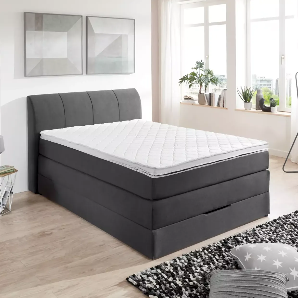 Ein stilvolles Boxspringbett in modernem Design vereint Ästhetik und Funktionalität. Die elegante Farbe Anthrazit passt sich harmonisch in jedes Schlafzimmerambiente ein und verleiht dem Raum eine ruhige Ausstrahlung. Gefertigt aus hochwertigem Stoff, bietet dieses Bett ein langanhaltendes und komfortables Schlaferlebnis. Der verwendete Polyester sorgt nicht nur für eine ansprechende Optik, sondern auch für eine besondere Langlebigkeit und Pflegeleichtigkeit des Materials.
