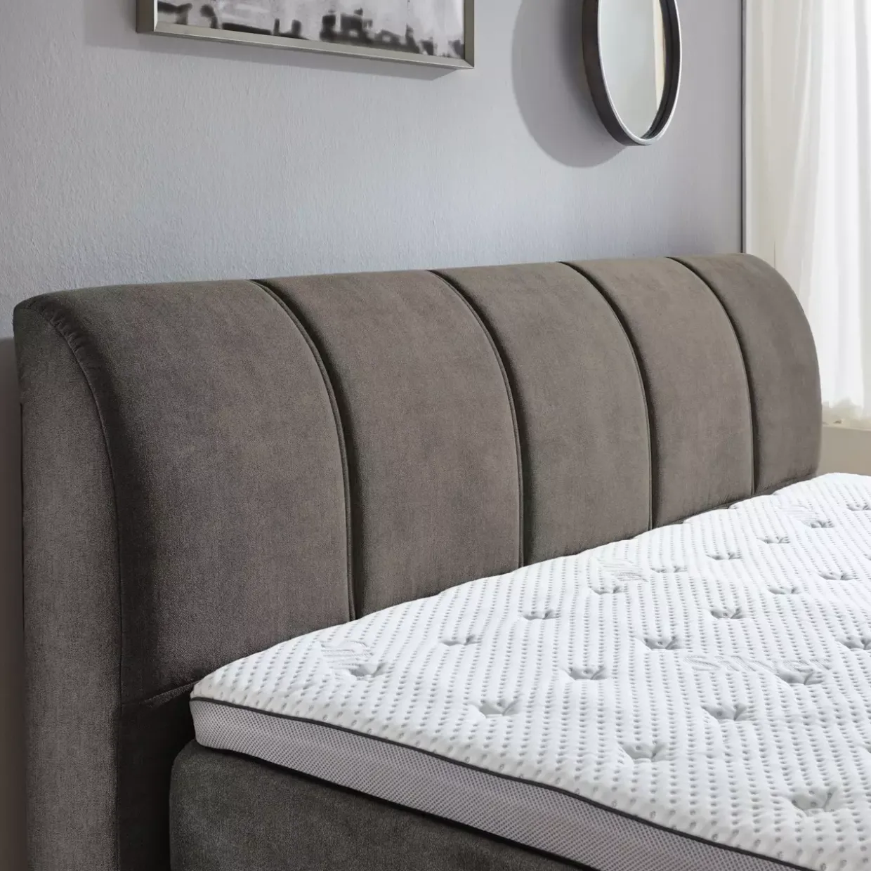 Das Kopfteil mit Schaumversteppung des Ottawa Boxspringbetts verleiht jedem Schlafzimmer eine besondere Note. Der konventionelle Stil des Bettes fügt sich wunderbar in verschiedene Einrichtungsstile ein und bietet dabei eine zeitlose Eleganz. Die vornehme Farbe in Taupe harmoniert perfekt mit zahlreichen Farbkonzepten und sorgt für ein angenehmes Ambiente.Ein praktisches Highlight: Der integrierte Bettkasten bietet zusätzlichen Stauraum, der im Alltag oft sehr nützlich ist. Die Materialkombination aus Holzwerkstoff, Kunststoff und Stoff verspricht Stabilität und Komfort. Diese sorgfältige Auswahl der Materialien sorgt dafür, dass das Bett sowohl funktional als auch ästhetisch ansprechend ist.Die durchdachte Konstruktion des Ottawa Boxspringbetts sorgt für hohen Schlafkomfort. Das Bettgestell bietet eine solide Basis, während die gepolsterte Oberfläche für Bequemlichkeit sorgt. Durch die Schaumversteppung im Kopfteil wird der Komfort noch weiter gesteigert, was besonders beim Lesen oder Entspannen im Bett von Vorteil ist.Ein durchdachtes Design und die funktionalen Eigenschaften machen dieses Bett zu einer idealen Wahl für alle, die Wert auf Komfort und Stil legen. Ob in einem modernen oder klassischen Schlafzimmer: Dieses Bett fügt sich harmonisch ein und bietet gleichzeitig praktischen Nutzen.