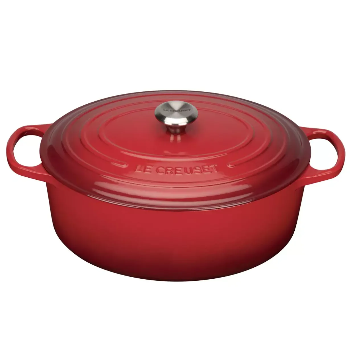 Ein Hauch von Retro-Charme: Der in Kirschrot gehaltene Bräter zieht alle Blicke in der Küche auf sich. Seine ovale Form mit einer Länge von 35 cm macht ihn zum idealen Begleiter für die Zubereitung von köstlichen Schmorgerichten oder Braten. Das Material aus Metall sorgt nicht nur für eine stilvolle Optik, sondern auch für eine hervorragende Wärmeleitung und -speicherung, sodass Ihre Speisen gleichmäßig gegart werden können.