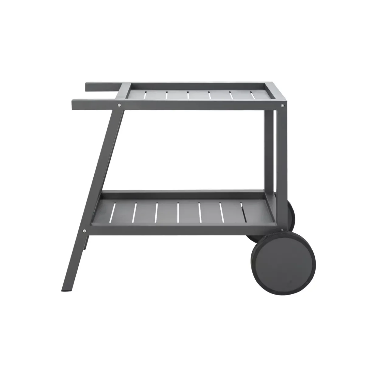 In einem eleganten Antrazit präsentiert sich der Samvaro Servierwagen als stilvoller Begleiter für Ihren Wohnbereich. Die klare Formensprache im Scandi-Stil harmoniert perfekt mit modernen und minimalistischen Einrichtungskonzepten. Rollen als Fußform bieten Flexibilität und Mobilität, sodass der Wagen mühelos in verschiedene Ecken Ihres Balkons oder Gartens bewegt werden kann.Gefertigt aus hochwertigem Aluminium, verbindet der Servierwagen eine robuste Struktur mit einem leichten Gewicht, das die Handhabung erleichtert. Die pulverbeschichtete Oberfläche verleiht dem Möbelstück nicht nur eine edle Optik, sondern schützt es auch zuverlässig vor äußeren Einflüssen. Dies macht den Servierwagen zu einer langlebigen Lösung für den Außenbereich.Praktisch und pflegeleicht gestaltet sich die Reinigung: Ein einfaches feuchtes Wischen genügt, um ihn in makellosem Zustand zu halten. Der Samvaro Servierwagen ist eine vielseitige Ergänzung für Ihre sonstigen Balkon- und Gartenmöbel und eignet sich ideal, um Getränke, Snacks oder dekorative Elemente stilvoll zu präsentieren. Genießen Sie den Komfort und die Funktionalität dieses durchdachten Möbelstücks, das sich mühelos in Ihr Zuhause integriert. Ob für gesellige Abende oder entspannte Stunden im Freien – dieser Servierwagen ist stets ein treuer Begleiter.