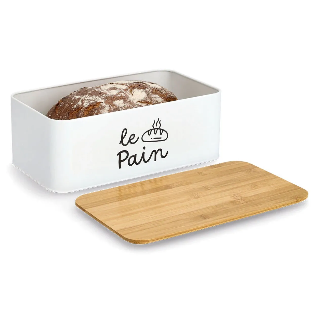 Der rechteckige Le Pain Brotkorb bringt den Charme des französischen Landlebens direkt in Ihre Küche. Inspiriert vom Cottage-Stil, kombiniert er Funktionalität mit einem ästhetischen Design. Der Brotkasten besteht aus einer gelungenen Mischung von Holz und Metall, wobei der Deckel aus nachhaltigem Bambus gefertigt ist. Diese Materialwahl sorgt nicht nur für eine ansprechende Optik, sondern auch für den Erhalt der Frische Ihrer Backwaren.