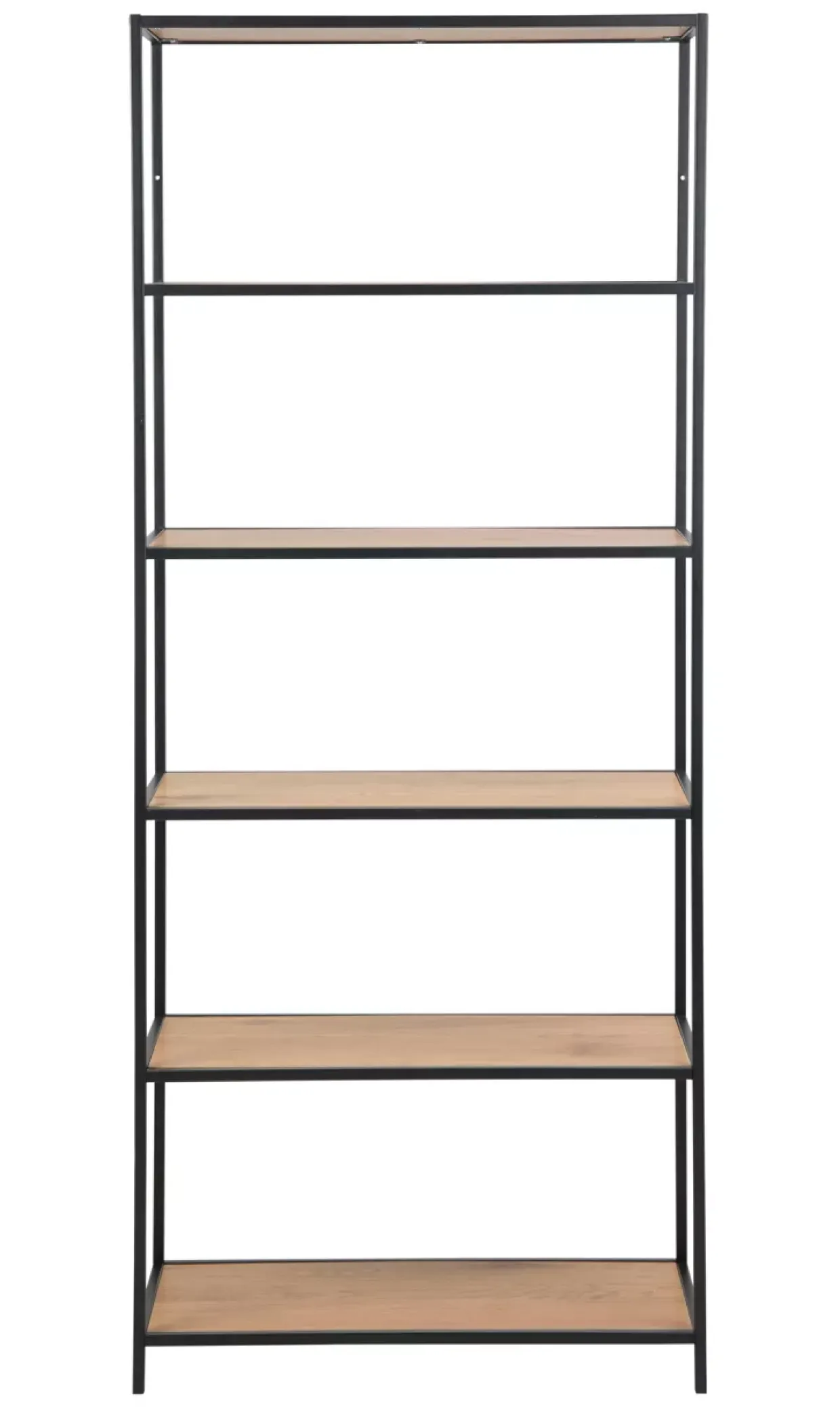 Entdecken Sie das Bücherregal Seaford, ein stilvolles Möbelstück im Loft-Stil, das Ihrem Wohnraum einen Hauch von industriellem Charme verleiht. Die Kombination aus Metall in Schwarz und einer hochwertigen Wildeiche-Nachbildung verleiht diesem Regal einen modernen und dennoch zeitlosen Look. Es ist die perfekte Ergänzung für jedes Zuhause, das Wert auf Design legt und gleichzeitig Funktionalität nicht vernachlässigen möchte. Lassen Sie sich von der klaren Linienführung und der robusten Bauweise begeistern, die dieses Bücherregal zu einem echten Blickfang in Ihrem Raum machen.