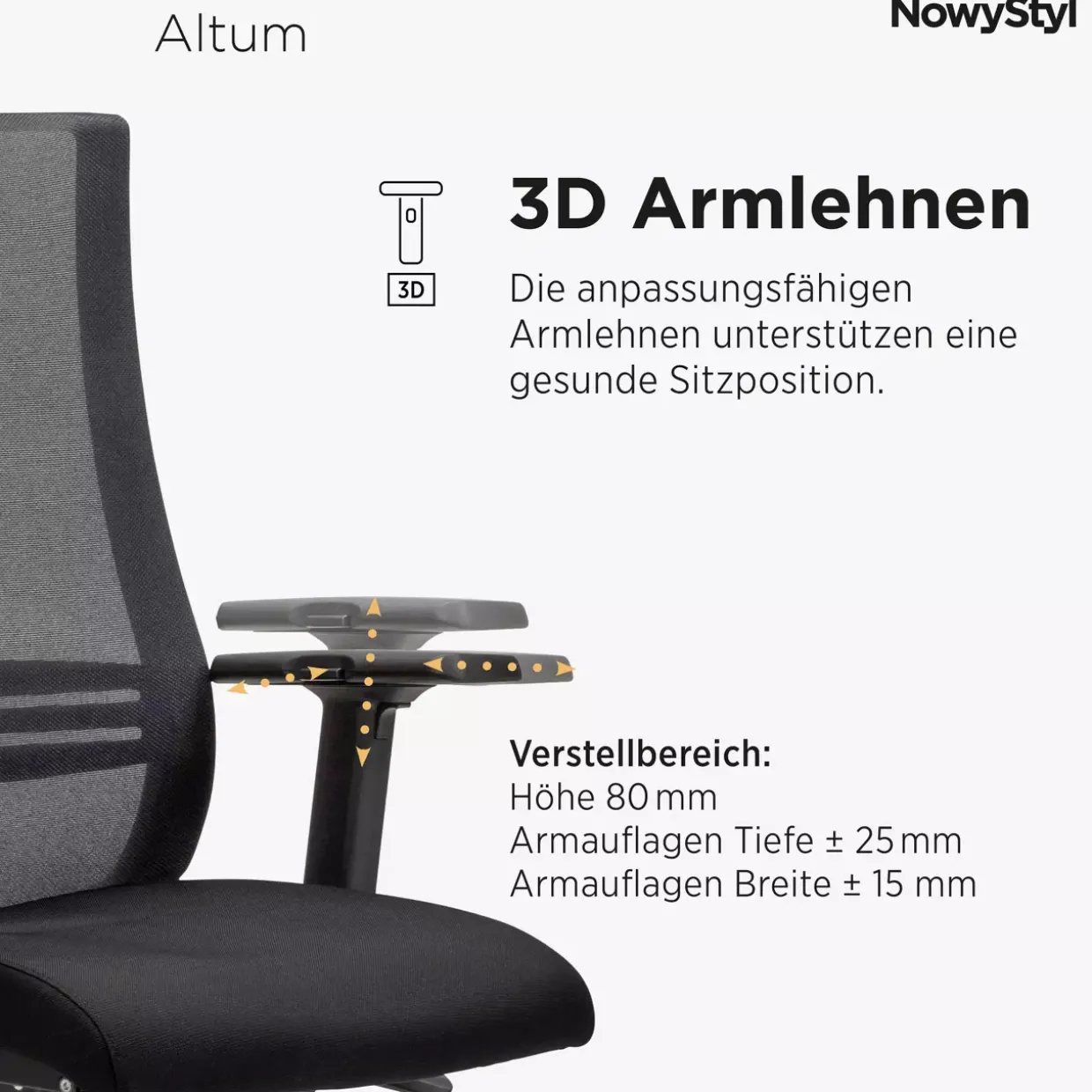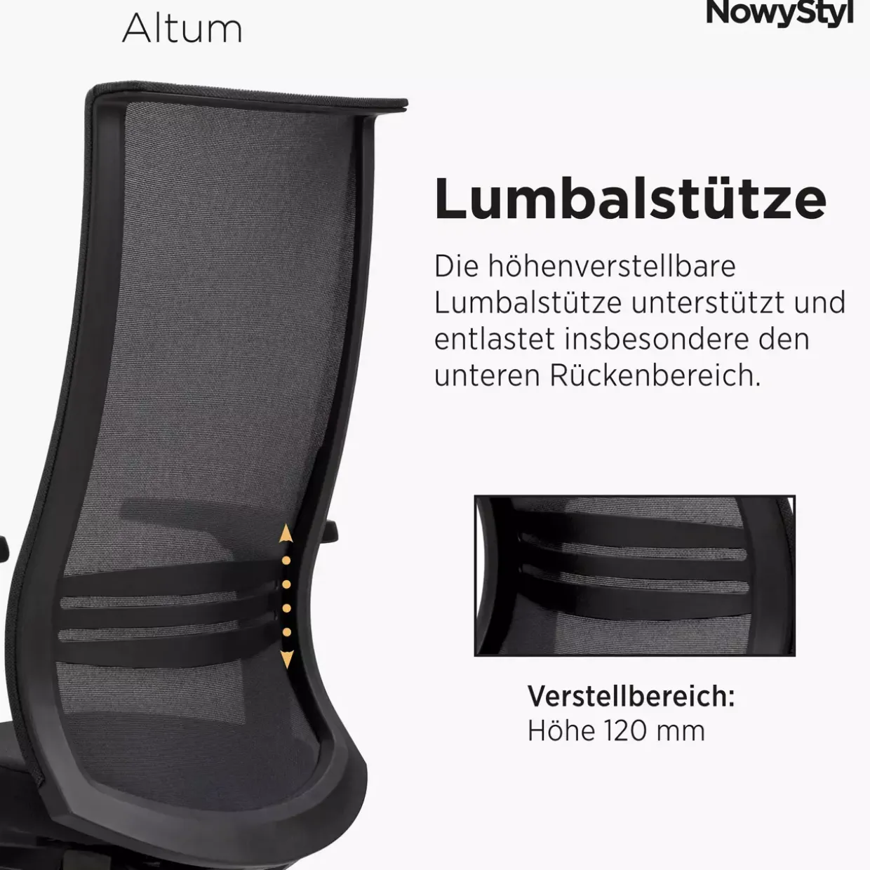 Sitzhöhe verstellbar, das ist ein entscheidendes Merkmal des Altum-HB BL Bürodrehstuhls, das Ihnen ermöglicht, Ihre Sitzposition individuell anzupassen. Der moderne Stil in Kombination mit einer eleganten Farbgebung in Schwarz verleiht Ihrem Büro eine stilvolle Note. Rollenfußform und die Verwendung von hochwertigen Materialien wie Stoff und Metall garantieren Stabilität und Langlebigkeit. Polyamid und Polyester sorgen für einen angenehmen Sitzkomfort, auch bei längerem Arbeiten. Die Synchronmechanik und die Sitztiefenverstellung bieten Flexibilität und unterstützen Ihre natürliche Sitzhaltung. Innovativ sind auch die 3D-Armlehnen, die sich in alle Richtungen anpassen lassen. Eine höhenverstellbare Lumbalstütze bietet zusätzliche Unterstützung im unteren Rückenbereich.Die Anti-Shock-Funktion verhindert ein plötzliches Zurückkippen der Rückenlehne und sorgt für Sicherheit. Dank der Arretierung in fünf Positionen können Sie die Lehne genau nach Ihren Wünschen fixieren. Der Altum-HB BL Bürodrehstuhl ist nicht nur funktional, sondern auch ein optisches Highlight, das sich harmonisch in jedes moderne Arbeitsumfeld einfügt. Die verschiedenen Verstellmöglichkeiten und die ergonomische Gestaltung bieten Ihnen höchsten Komfort und unterstützen eine gesunde Sitzhaltung während des Arbeitstages.