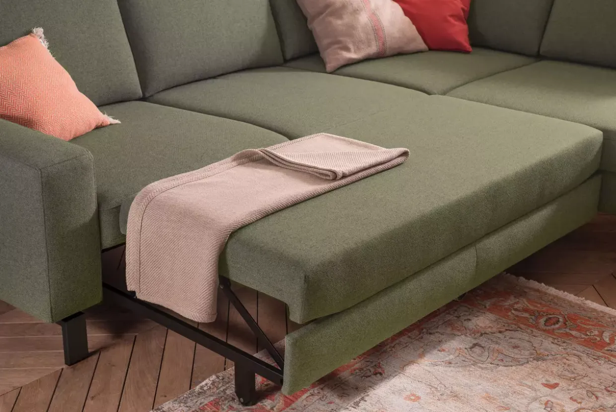 Entdecken Sie die Vielseitigkeit der Calama-Move 2.0 Polstergarnitur. Die einzigartige Bettfunktion als Querschläfer bietet eine praktische Lösung für Übernachtungsgäste und sorgt für erholsame Nächte. In einem klassischen Stil gestaltet, kombiniert diese Garnitur Stoff und Metall, um sowohl in modernen als auch in traditionellen Wohnräumen eine gute Figur zu machen.