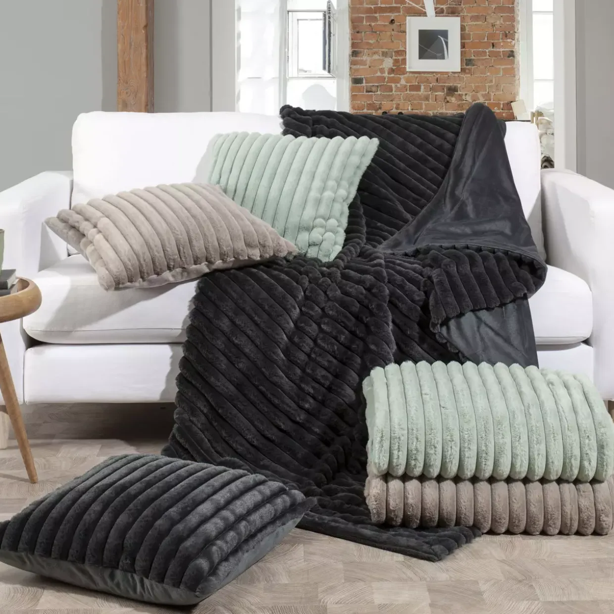 Durch ihren modernen Stil fügt sich die Decke harmonisch in verschiedene Wohnkonzepte ein, sei es im Wohnzimmer als Blickfang auf dem Sofa oder im Schlafzimmer als zusätzliche Wärmeschicht. Dank ihrer ganzjährigen Einsatzfähigkeit wird sie schnell zu einem unverzichtbaren Begleiter für gemütliche Stunden. Ihre geriffelte Struktur verleiht ihr nicht nur eine interessante Haptik, sondern auch eine optische Tiefe, die jedem Raum eine besondere Atmosphäre verleiht.
