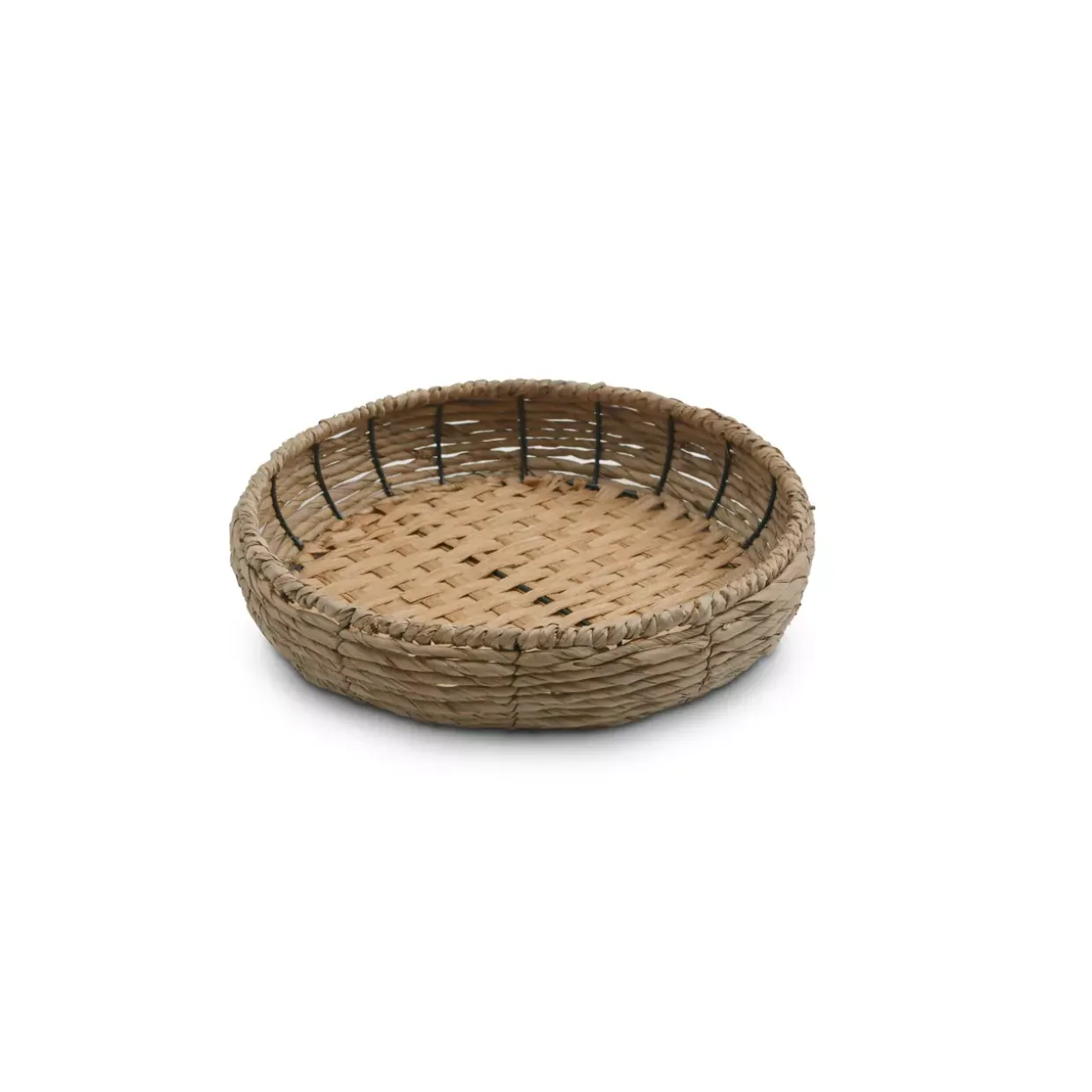 Mit einem großzügigen Durchmesser von 34,5 cm bietet dieses Dekotablett ausreichend Platz, um stilvoll dekorative Akzente in Ihrem Zuhause zu setzen. Die naturfarbenen Töne fügen sich mühelos in verschiedene Einrichtungsstile ein und schaffen eine warme, einladende Atmosphäre. Ob als Unterlage für Kerzen, Vasen oder kleine Pflanzen – das Tablett bietet vielfältige Möglichkeiten, Ihre persönlichen Dekorationen in Szene zu setzen.