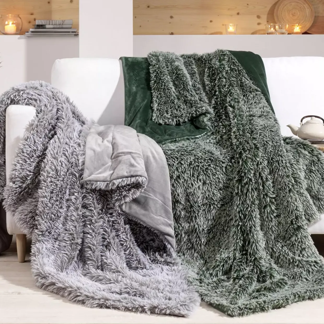 In einem eleganten Loft-Stil präsentiert sich die rechteckige Fellimitatdecke Fluffy in einem ansprechenden Grün. Diese Decke besticht nicht nur durch ihr ansprechendes Design, sondern auch durch ihre Funktionalität und Vielseitigkeit. Aus hochwertigen Synthetikfasern gefertigt, bietet sie das ganze Jahr über angenehme Wärme und Komfort.