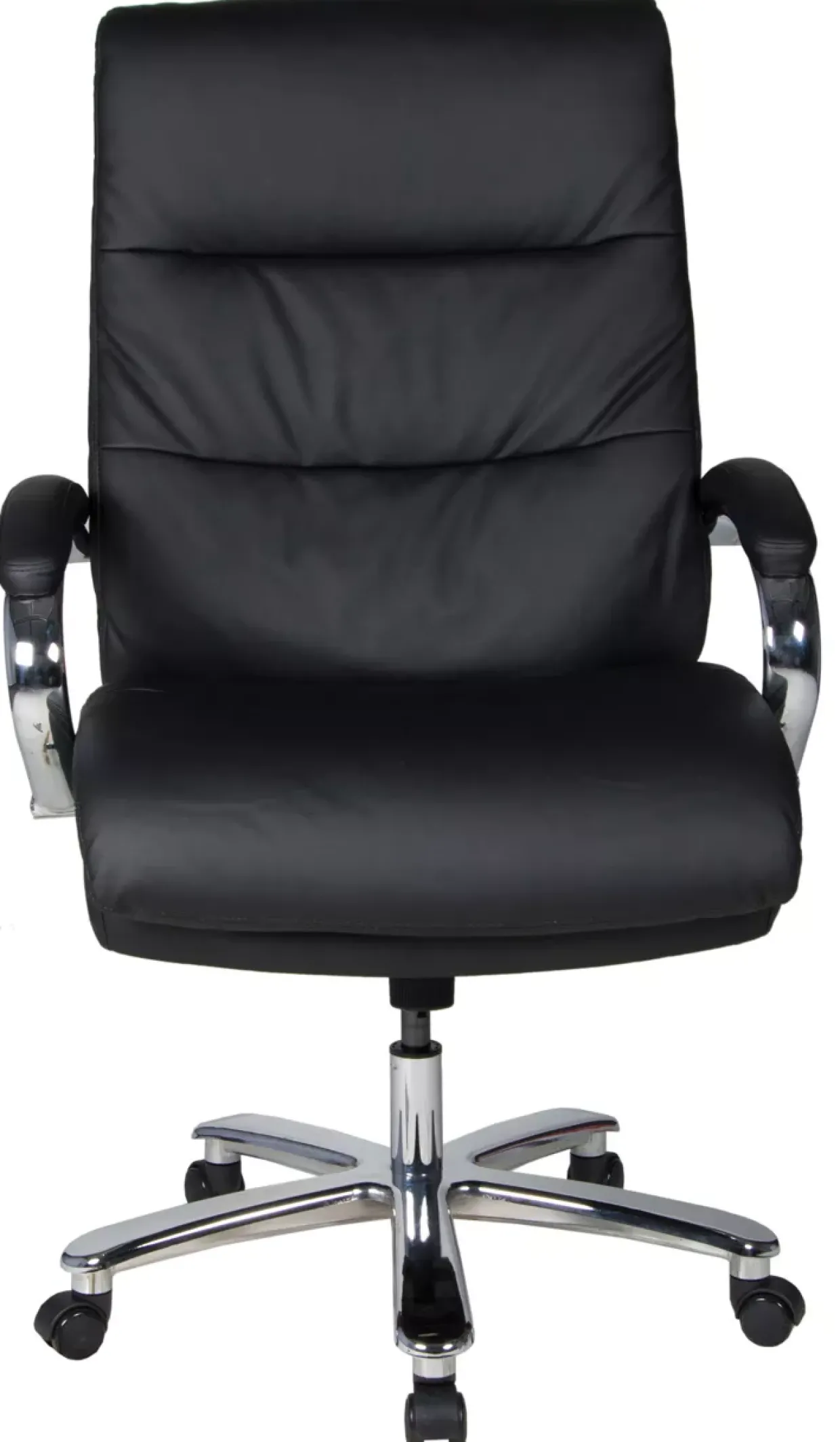 Schwarzes Kunstleder umhüllt den Chefsessel und verleiht ihm eine Aura von Eleganz. Durch die Kombination aus robustem Stahl und hochwertigem Mischgewebe wird nicht nur Stabilität, sondern auch ein angenehmes Sitzgefühl gewährleistet. Die stilvolle Verbindung von Metall und Textil schafft eine harmonische Balance zwischen Funktionalität und Design.