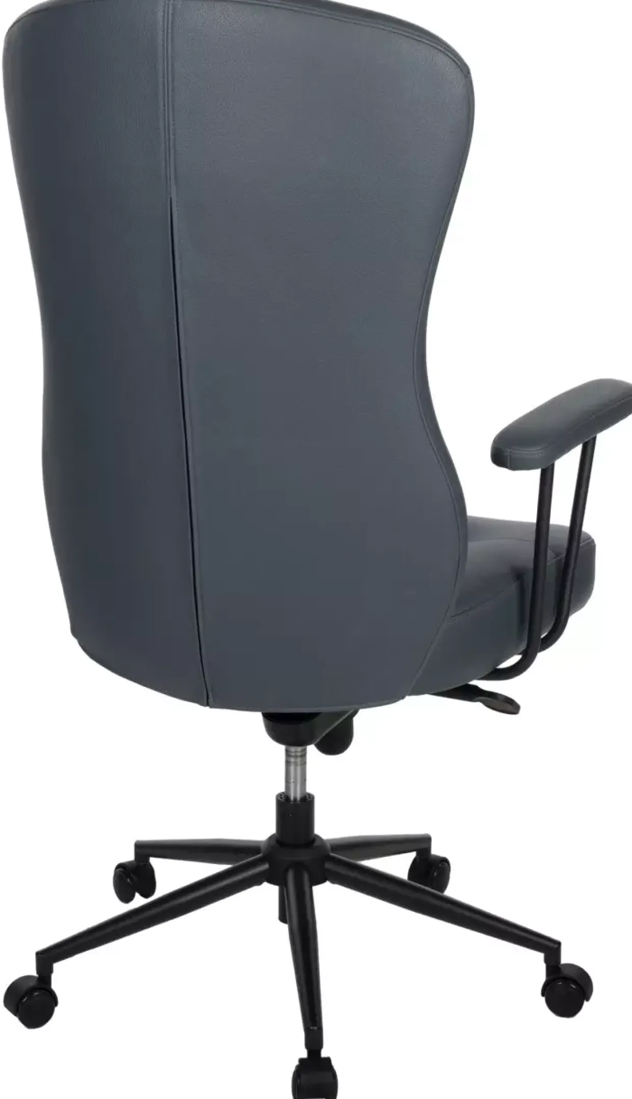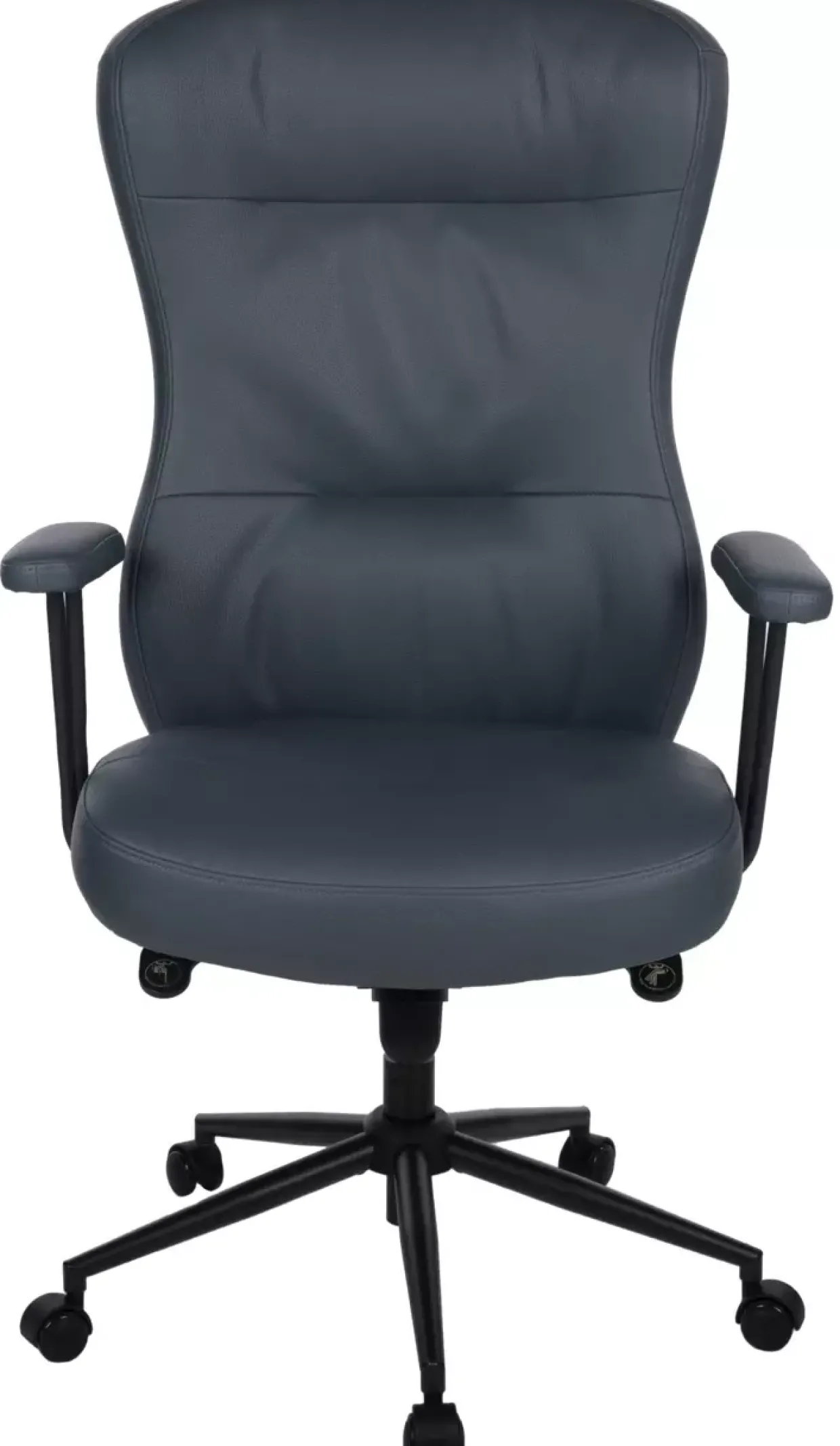 Der elegante Sessel aus Microfaser in blaugrauem Lederlook vereint Stil und Komfort auf perfekte Weise. Mit seiner ansprechenden Farbgebung fügt er sich nahtlos in moderne Wohnräume ein und verleiht diesen eine zeitgemäße Note. Das hochwertige Material sorgt nicht nur für eine angenehme Haptik, sondern zeichnet sich auch durch seine Strapazierfähigkeit aus, was dem Sessel eine lange Lebensdauer verleiht.Ein eleganter Chefsessel in Lederlook Blaugrau oder klassischem Schwarz bringt Stil in jeden Raum. Die Kombination aus robustem Stahl und hochwertiger Synthetikfaser verleiht diesem Sessel nicht nur Stabilität, sondern auch eine angenehme Haptik. Dank der Gewebeart Microfaser fühlt sich der Bezug weich und einladend an.Die gepolsterten Armlehnen aus Metall bieten zusätzlichen Komfort und unterstützen eine ergonomische Sitzhaltung. Ein besonderes Highlight ist die stufenlose Sitzhöhenverstellung mittels Sicherheitsgasdruckfeder, die eine individuelle Anpassung ermöglicht. Für dynamisches Sitzen sorgt die Soft-Tec Kniegelenk Wippfunktion, die sich auf das Körpergewicht einstellen lässt.Das Fußkreuz aus besonders belastbarem Metall gewährleistet eine hohe Tragfähigkeit, während die Sicherheitsdoppelrollen speziell für feste Bodenbeläge konzipiert sind. So bleibt der Sessel auch bei intensiver Nutzung mobil und stabil. Der Chefsessel ist LGA geprüft und erfüllt höchste Sicherheitsstandards, was ein beruhigendes Gefühl von Qualität und Langlebigkeit vermittelt.Nicht nur die Funktionalität, sondern auch die optische Eleganz machen diesen Chefsessel zu einem idealen Begleiter in Büro oder Arbeitszimmer. Die Höhenverstellbarkeit von 118 bis 124 cm bietet zusätzliche Flexibilität und Anpassungsfähigkeit, sodass jede Arbeitssituation optimal unterstützt wird.