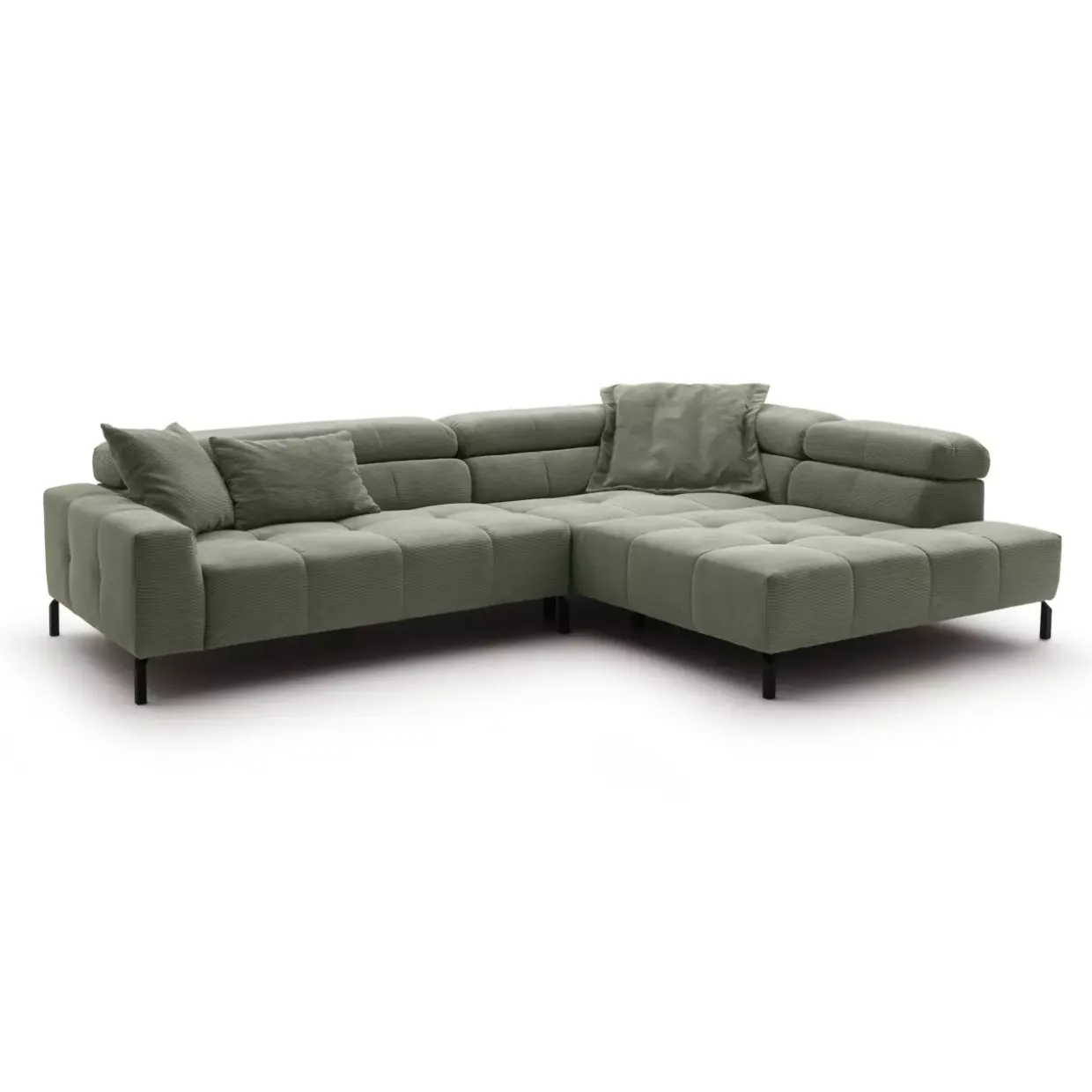 Ein Sitz aus PUR-Schaum, schichtweise aufgebaut in verschiedenen Stärken, bietet Ihnen unvergleichlichen Komfort bei der Cleveland Polstergarnitur. Diese moderne Garnitur vereint ästhetisches Design mit funktionalen Eigenschaften und passt sich mühelos in zeitgemäße Wohnräume ein. Der feine Cordbezug in oliv oder schwarz matt verleiht dem Möbelstück eine elegante Note und sorgt für eine angenehme Haptik.