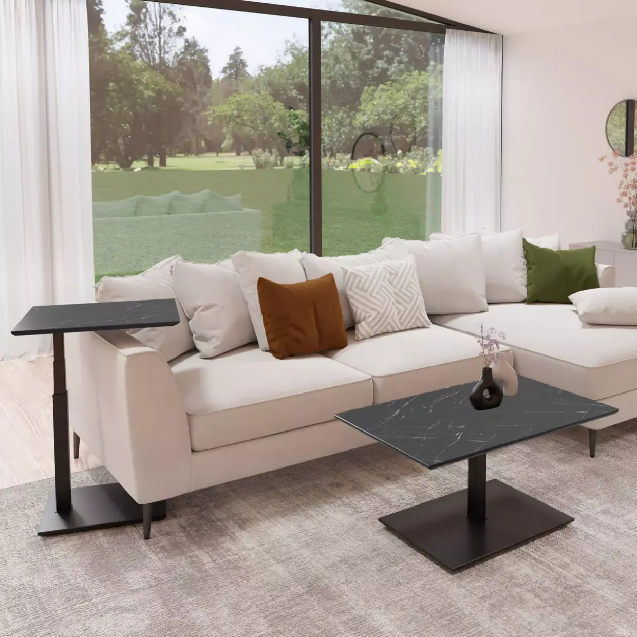 Der Couchtisch besticht durch seine Vielseitigkeit. Dank der Ilse-Hydro-Lift-Mechanik ist er stufenlos höhenverstellbar und passt sich Ihren Bedürfnissen von 47 cm bis 65 cm mühelos an. Praktisch und innovativ: Die Bodenplatte auf Rollen ermöglicht eine flexible Positionierung, ohne den Stil zu beeinträchtigen. Sie können den Tisch leicht bewegen, um in jedem Raum eine perfekte Anordnung zu schaffen.