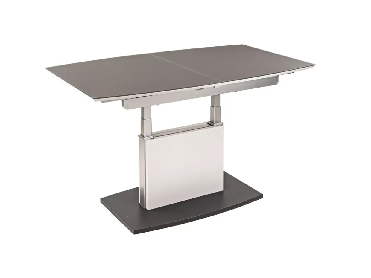 Ein besonderes Highlight ist die innovative Tornado Auszugsfunktion, die es ermöglicht, den Tisch bei Bedarf auf eine Länge von bis zu 155 cm zu erweitern. So bietet er flexibel Platz für gesellige Runden oder gemütliche Abende. Die manuelle Höhenverstellbarkeit sorgt zudem für zusätzlichen Komfort und Anpassungsfähigkeit, sodass der Tisch je nach Bedarf genutzt werden kann.