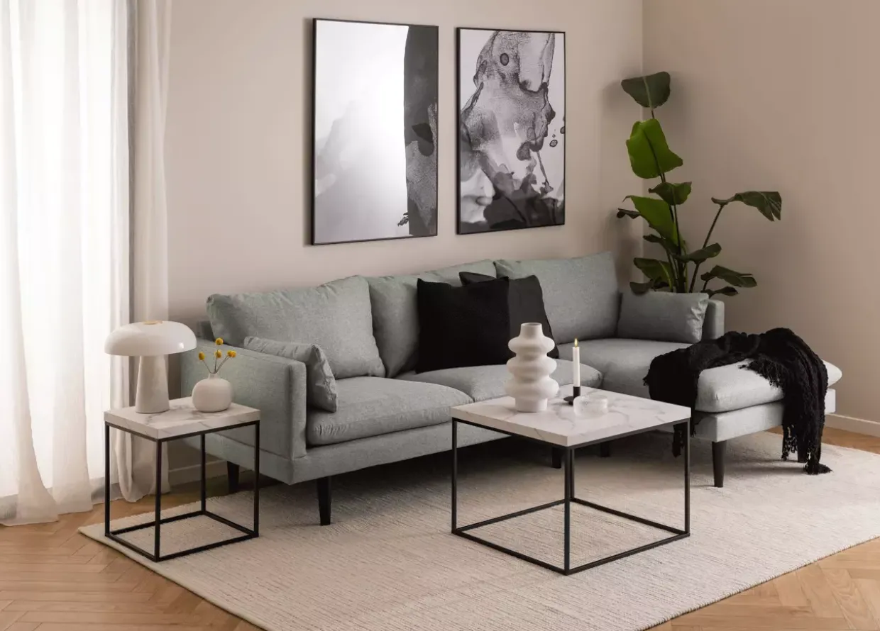 Der Barossa Couchtisch besticht durch seine einzigartige Materialkombination. Das robuste Metallgestell bietet nicht nur Stabilität, sondern auch eine ansprechende Optik, die durch die raue Oberfläche noch betont wird. Der Marmor in Carrara Weiß sorgt für einen luxuriösen Touch und bringt einen Hauch von Eleganz in Ihr Zuhause. Diese sorgfältig ausgewählten Materialien garantieren Langlebigkeit und machen den Tisch zu einem verlässlichen Begleiter für viele Jahre.