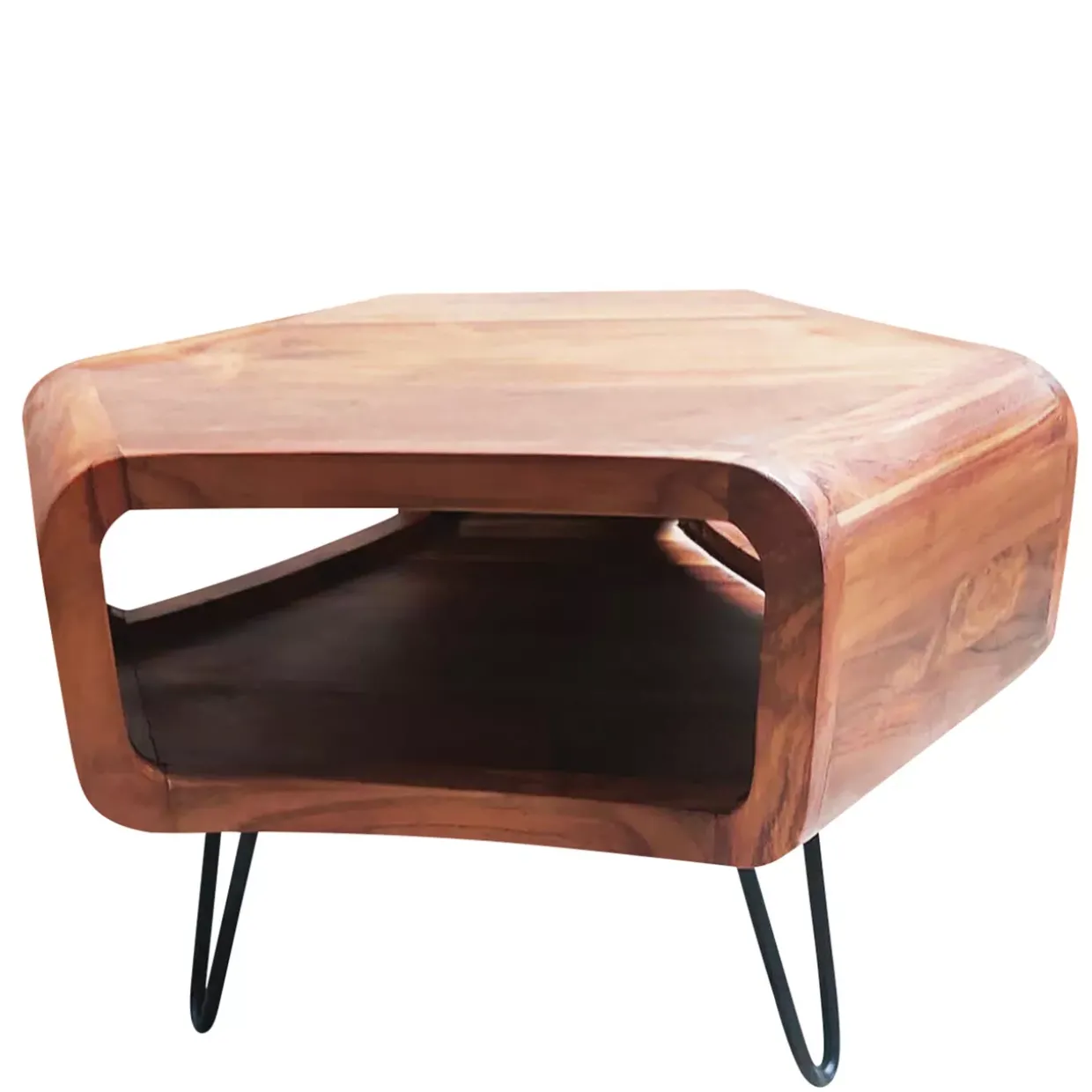 In der Kombination aus Holz und Metall vereint der Tisch klassische Schönheit mit moderner Funktionalität. Diese Materialwahl sorgt nicht nur für Stabilität, sondern auch für eine interessante optische Spannung. Ein Couchtisch, der in jedem Raum zum Blickfang wird und sowohl in modernen als auch in traditionell eingerichteten Wohnbereichen seinen Platz findet.