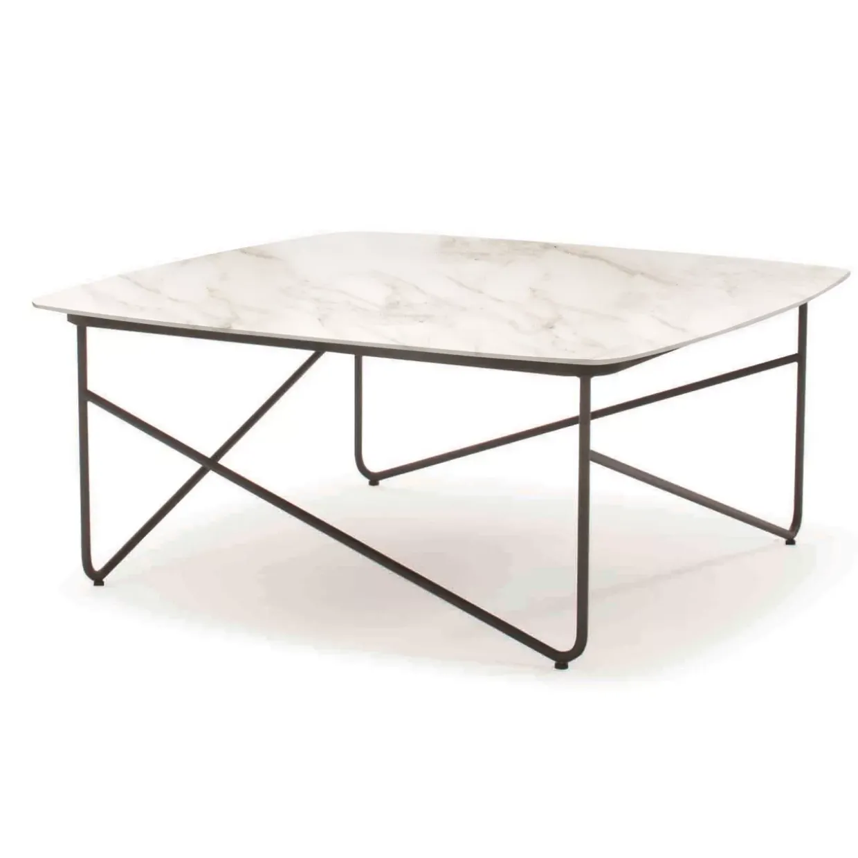 Ein Hauch von Eleganz wird durch die quadratische Form des Couchtisches in Ihr Wohnzimmer gebracht. Mit seinem konventionellen Stil fügt er sich nahtlos in verschiedene Einrichtungsstile ein. Die Kombination aus Metall und Keramik verleiht dem Tisch eine robuste und zugleich edle Anmutung.