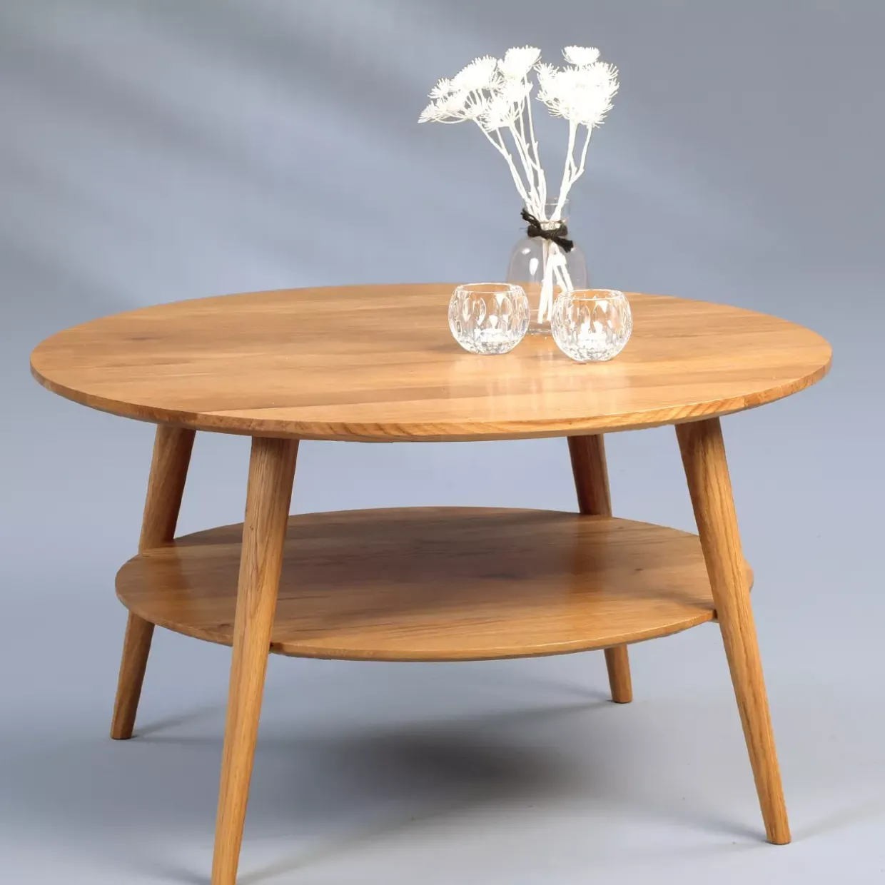 Mit einem Durchmesser von 80 cm bietet dieser Tisch genügend Platz, um Ihre Lieblingszeitschriften, Getränke oder Dekorationsobjekte stilvoll zu präsentieren. Die geölte Oberfläche sorgt für eine angenehme Haptik und unterstreicht die natürliche Maserung des Holzes, wodurch der Tisch zum Blickfang in jedem Raum wird.