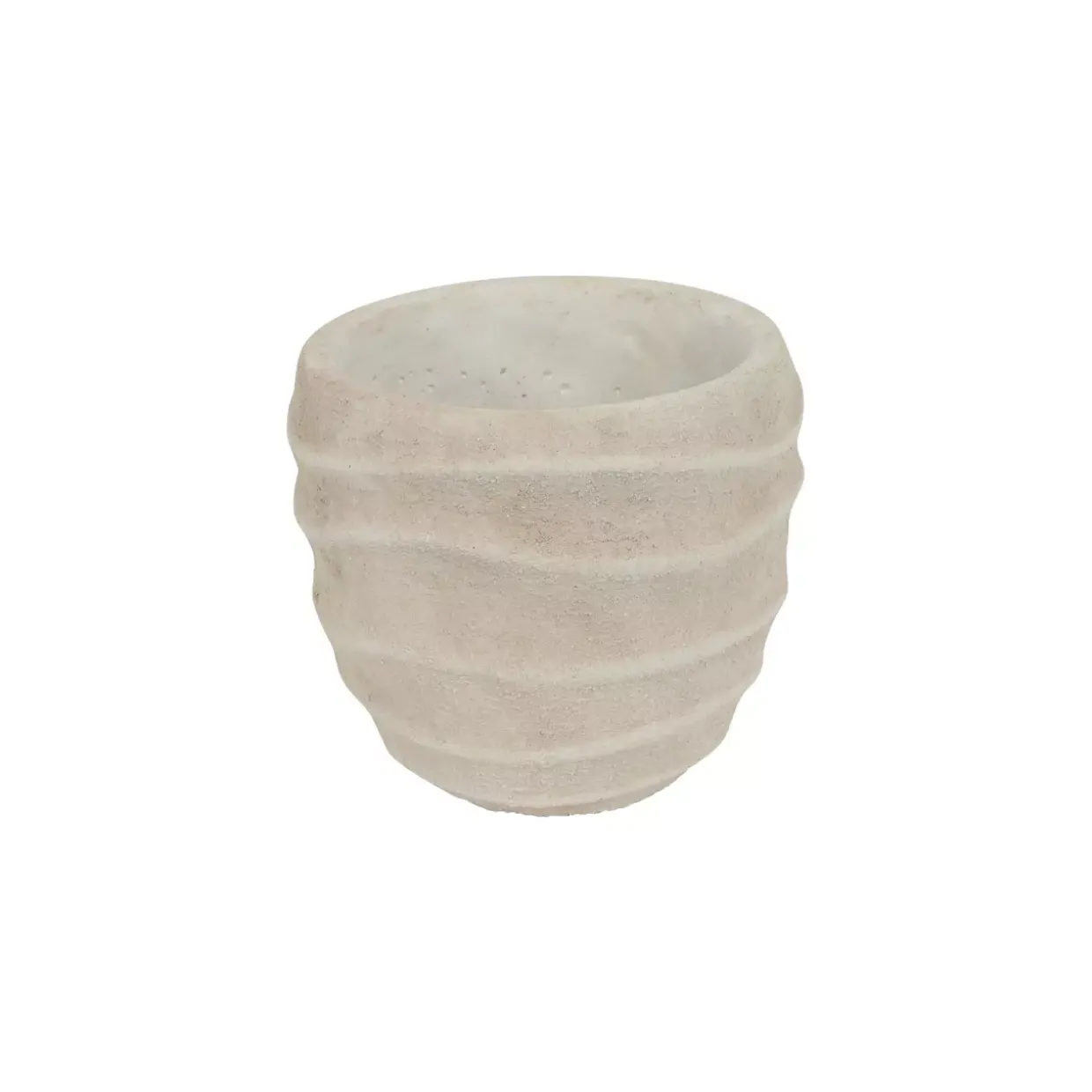 Der Blumentopf ist speziell in der Kategorie „rd Ribbel M weiß“ angesiedelt, was auf seine strukturierte Oberfläche hinweist. Diese feine Riffelung verleiht ihm eine besondere Haptik und hebt ihn von herkömmlichen Modellen ab.