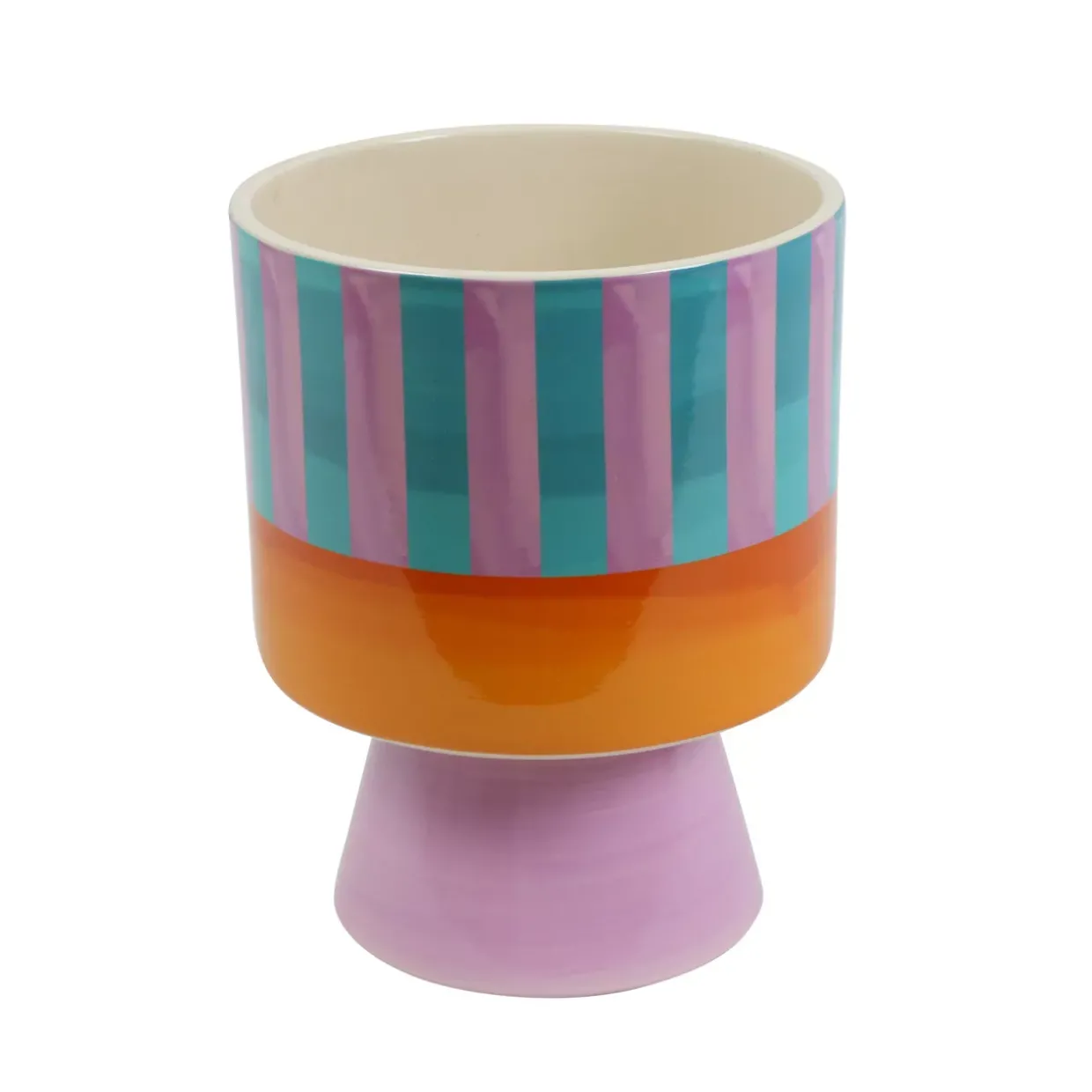 Multicolor verleiht jedem Raum eine fröhliche Note und schafft eine lebendige Atmosphäre. Der Blumentopf im Boho-Stil besticht durch sein einzigartiges Design, das sich hervorragend in verschiedene Wohnstile integrieren lässt. Gefertigt aus hochwertiger Keramik, bietet dieses Modell eine robuste und langlebige Basis für Ihre Pflanzen. Der runde Streifen-Look in verschiedenen Farben sorgt für einen interessanten visuellen Effekt, der sowohl im Innen- als auch im Außenbereich ein echter Hingucker ist.