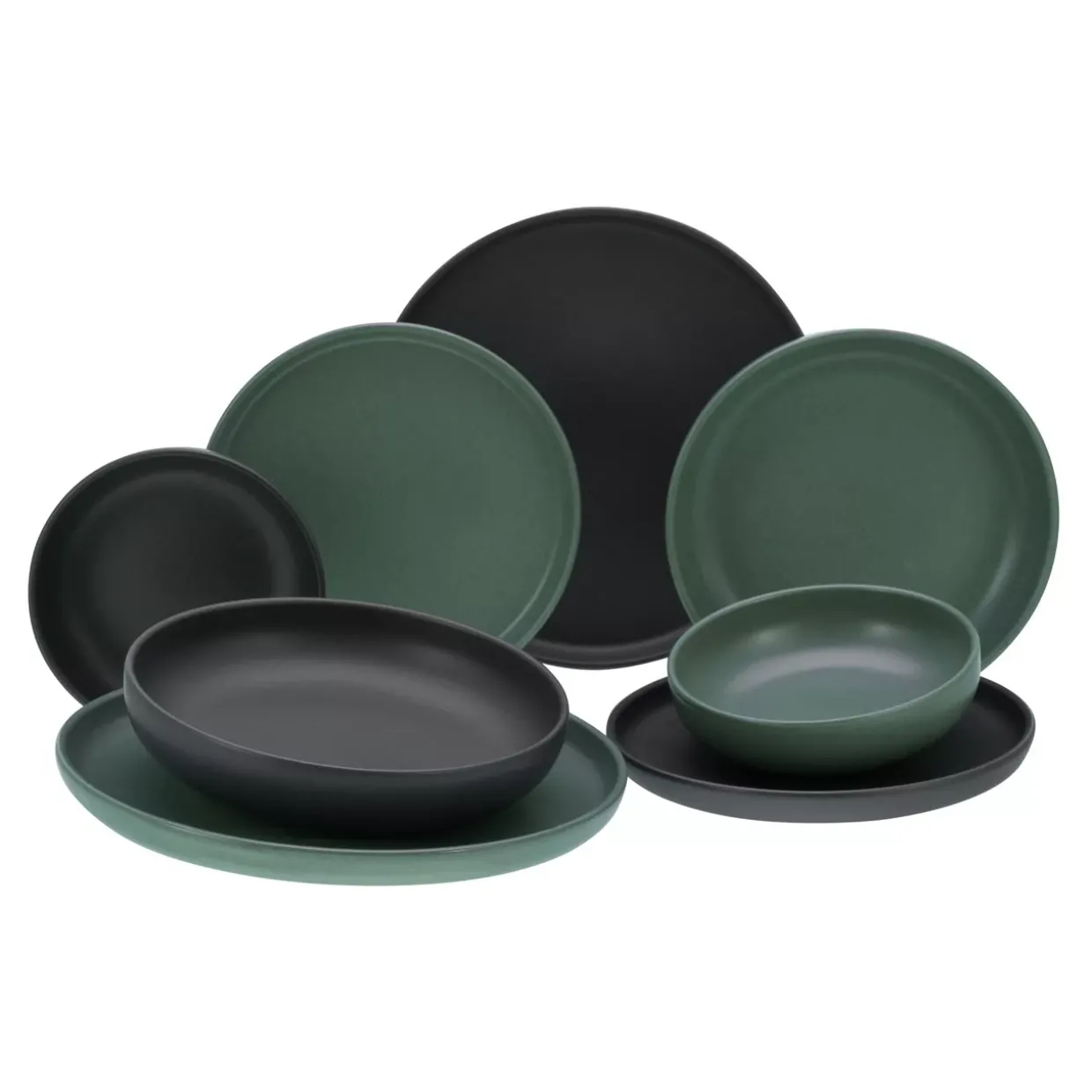 Die runde Form des modernen Kombiservices Uno bringt Eleganz auf Ihren Tisch. Mit einem stilvollen Mix aus Schwarz und Grün fügt sich dieses 8-teilige Set nahtlos in verschiedene Einrichtungsstile ein. Hergestellt aus hochwertigem Steinzeug, vereint es eine glasierte und matte Oberfläche, die sowohl ästhetisch ansprechend als auch funktional ist.