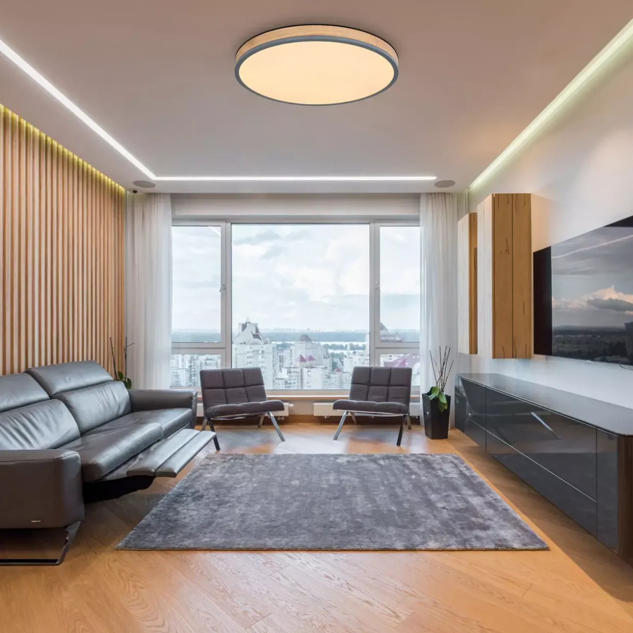 Die DORO Deckenleuchte beeindruckt mit ihrer variablen Lichtleistung, die von 0 bis zu 5300 Lumen reicht. Mit der im Lieferumfang enthaltenen Fernbedienung können Sie die Lichtintensität und -farbe nach Ihren Wünschen anpassen. Ob kaltweiß, tageslichtweiß oder warmweiß – die Farbtemperatur ist zwischen 2700 und 6500K einstellbar. Die integrierten LED-Leuchtmittel sorgen für eine effiziente und langlebige Beleuchtung. Dank der praktischen Memory Funktion und der Timer-Einstellung erhellt die Leuchte Ihren Raum stets zur gewünschten Zeit und speichert Ihre bevorzugten Einstellungen zuverlässig.
