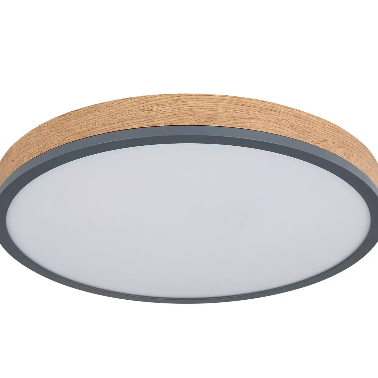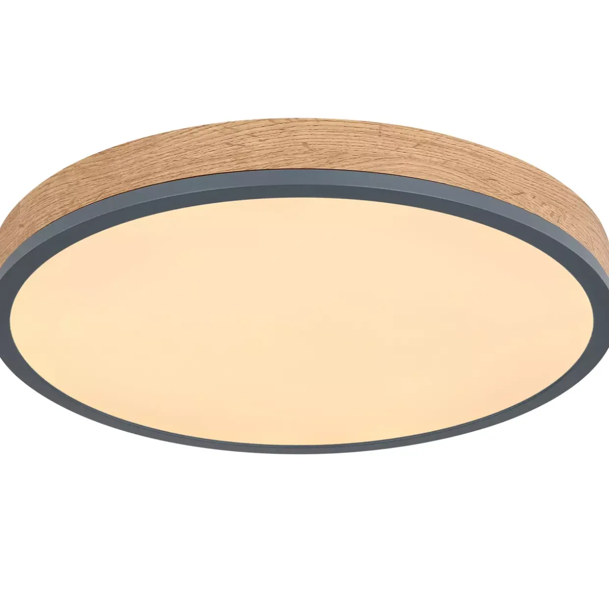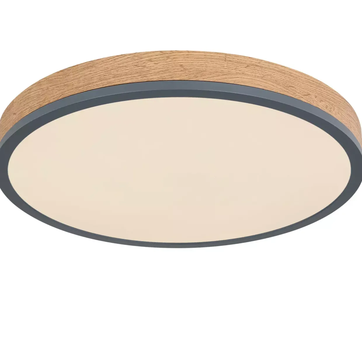 Entdecken Sie die moderne Eleganz der DORO Deckenleuchte, die in einer stilvollen Graphitfarbe erstrahlt und sich perfekt in zeitgemäße Wohnräume einfügt. Mit einem beeindruckenden Durchmesser von 45 cm und einer variablen Lichtstärke von 1800 bis 3200 Lumen bietet diese Deckenleuchte eine flexible Beleuchtungslösung für jeden Raum. Die Kombination aus hochwertigen Materialien wie Holzwerkstoff, Kunststoff und Metall verleiht der DORO Leuchte nicht nur Stabilität, sondern auch ein ansprechendes Design, das Ihrem Zuhause eine besondere Note verleiht.