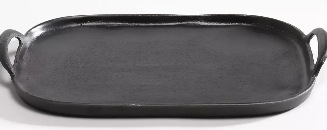 Kühle Eleganz trifft auf moderne Formgebung: Das schwarze Deko-Tablett mit Griffen vereint stilvolle Schlichtheit mit funktionalem Design. Gefertigt aus hochwertigem Aluminium, strahlt es Robustheit und Langlebigkeit aus, während es gleichzeitig leicht und handlich bleibt. Die klaren Linien und die schimmernde Oberfläche machen es zu einem Blickfang in jedem modernen Wohnambiente.