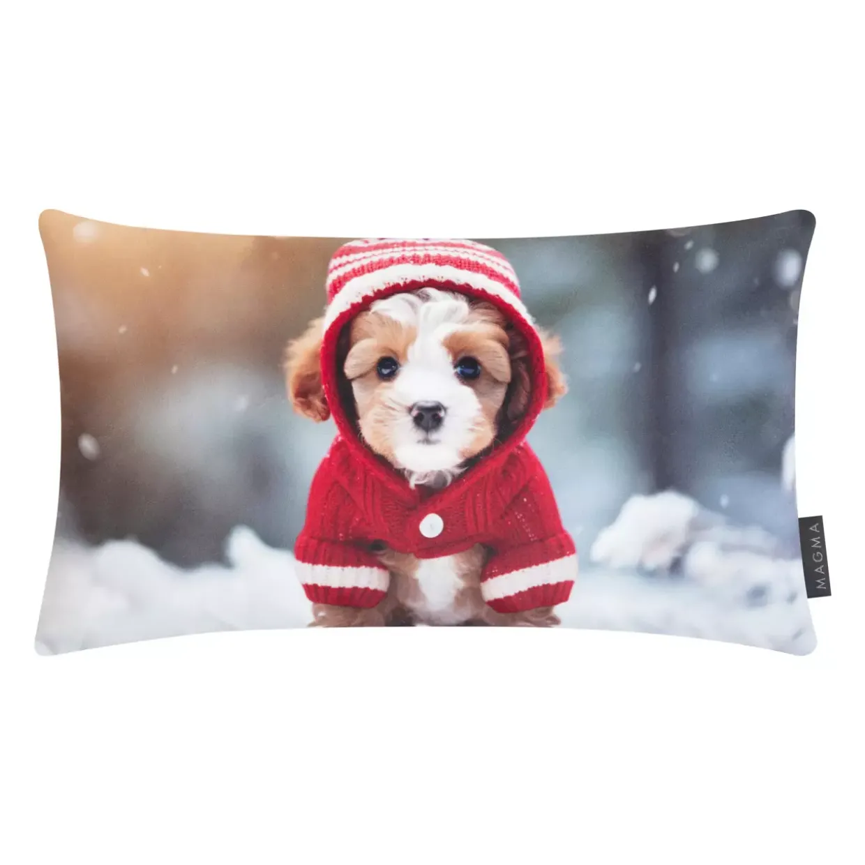 Ein moderner Touch in rechteckiger Form: Das Zier- und Dekokissen XMAS PUPPIES bringt mit seinem einzigartigen Design eine besondere Atmosphäre in jeden Raum. Die bedruckte Oberfläche kombiniert die Motive Sport, Tiere, Schriftzug und Landschaft, was dem Kissen eine vielseitige und interessante Optik verleiht. Hergestellt aus hochwertigen Synthetikfasern, vereint es Langlebigkeit mit einem angenehmen Gefühl auf der Haut.