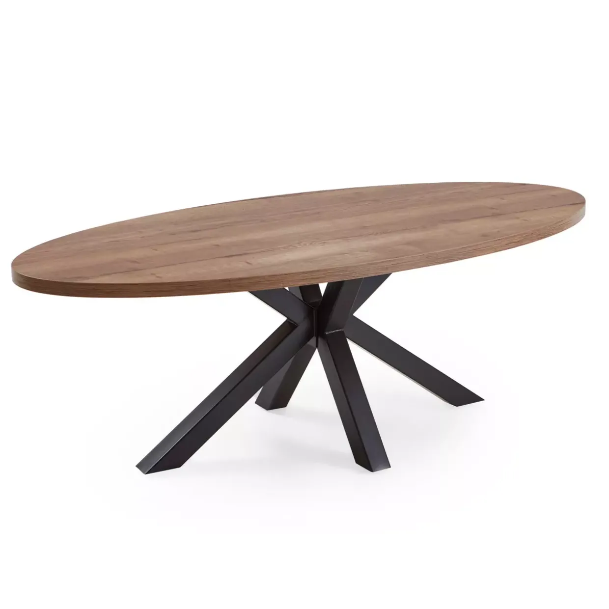 Elipsenförmige Eleganz trifft auf modernen Chic: Der Design-Tisch Menu präsentiert sich als stilvolles Möbelstück, das mit seiner einzigartigen Form jedem Raum eine besondere Note verleiht. Die harmonische Kombination aus schwarzem Metall und einer Halifax Tabak Nachbildung im Holzwerkstoff sorgt für ein stimmiges Gesamtbild, das sowohl in klassischen als auch in zeitgenössischen Einrichtungsstilen überzeugt.