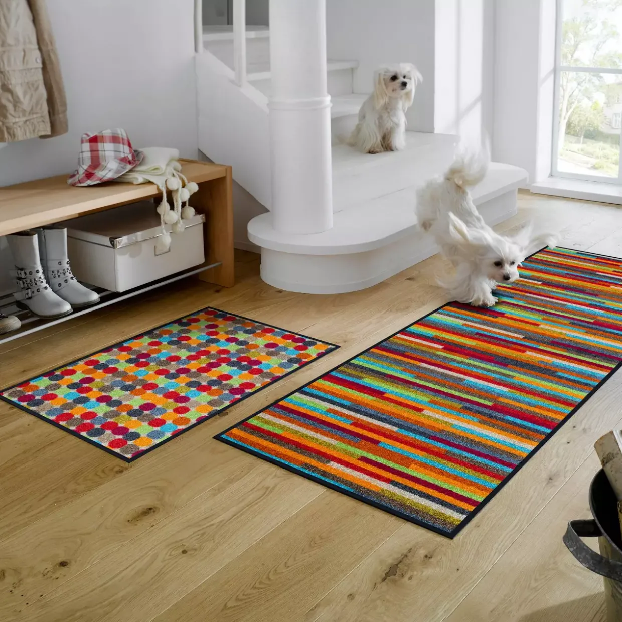 Entdecken Sie die moderne Fußmatte „Mikado Dots“, die mit ihrem bunten, lebendigen Design und dem ansprechenden Kreis-Muster frischen Wind in Ihr Zuhause bringt. Diese rechteckige Matte kombiniert stilvolle Ästhetik mit funktionalen Eigenschaften, die sie zu einem unverzichtbaren Accessoire für jeden Haushalt machen. Hergestellt aus einer hochwertigen Mischung aus Kunststoff und Textil, ist die „Mikado Dots“ Fußmatte nicht nur ein optisches Highlight, sondern auch besonders strapazierfähig und zeitlos elegant. Ihre Vielseitigkeit macht sie ideal für den ganzjährigen Einsatz, egal ob im Eingangsbereich oder in anderen Räumen.