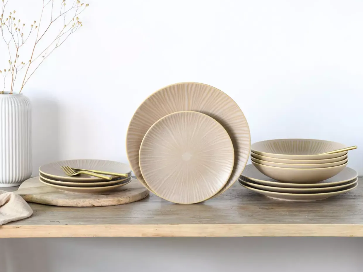 Ein Hauch von Modernität zieht mit dem Dessertteller Vesuvio in Ihr Zuhause ein. Der runde Teller fasziniert durch seine harmonische Sandfarbe, die sich nahtlos in jede Tischdekoration einfügt. Gefertigt aus Steinzeugkeramik, vereint der Vesuvio Teller Robustheit und Eleganz. Mit einem Durchmesser von 21 Zentimetern bietet er die ideale Fläche für Ihre Desserts und Kuchen.