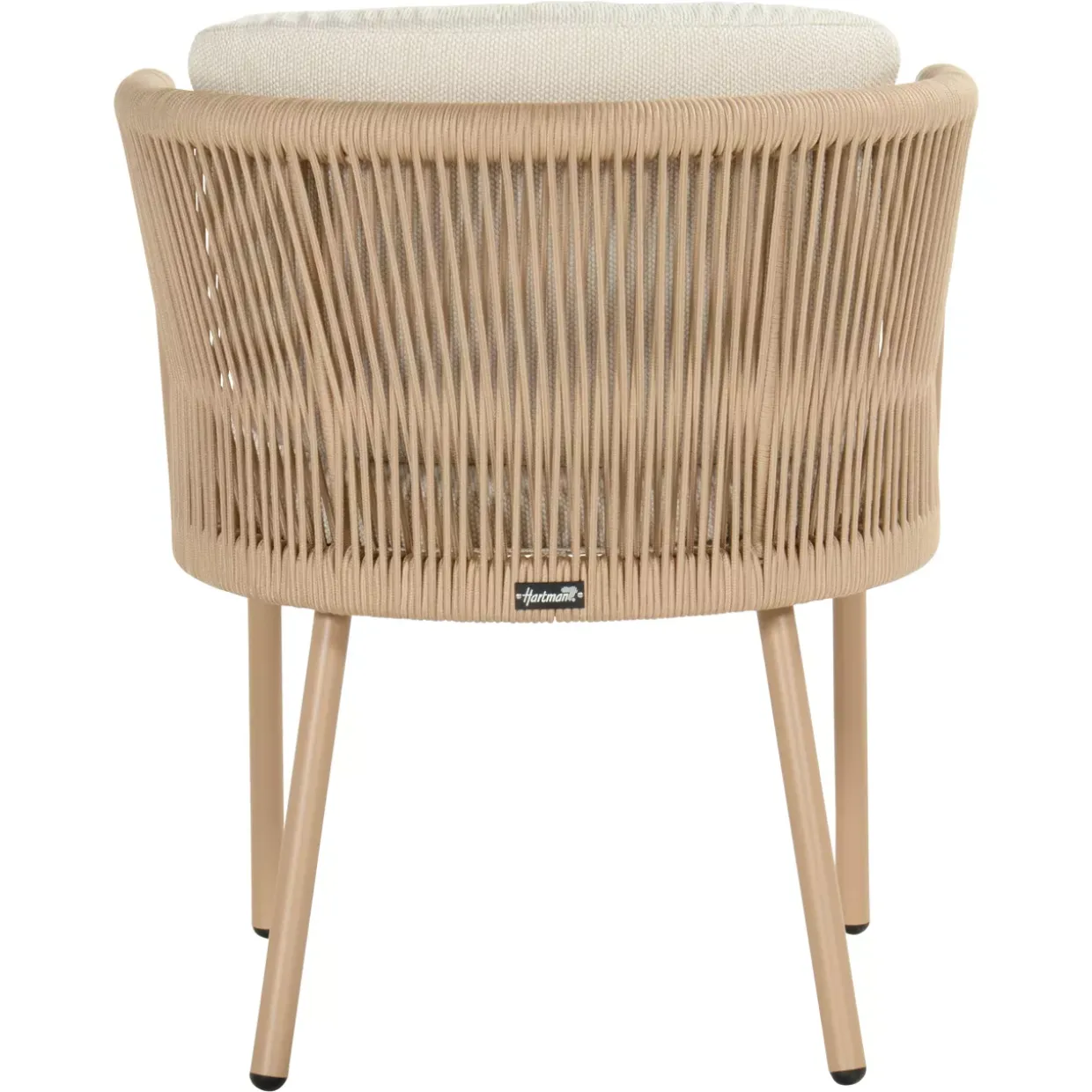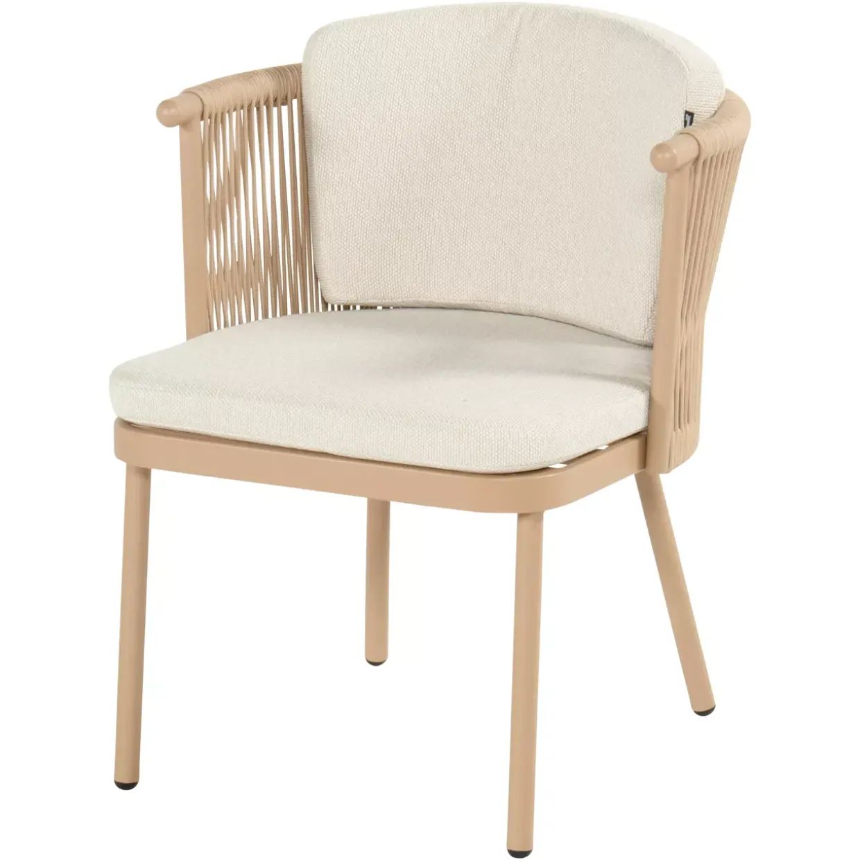 Der Toledo Dining Sessel vereint charmanten Cottage-Stil mit modernem Design. In warmen Brauntönen gehalten, fügt er sich harmonisch in jedes Ambiente ein. Der stabile Aluminiumrahmen sorgt für Langlebigkeit und Leichtigkeit, perfekt für vielfältige Einsatzmöglichkeiten. Ein 4-Fußgestell unterstreicht die solide Bauweise und gewährleistet stabilen Halt.Ein Highlight des Sessels ist die komfortable Rückenlehne aus Olefin Rope. Dieses Material ist bekannt für seine Widerstandsfähigkeit gegen Witterungseinflüsse und seine angenehme Haptik. Die Kombination aus Metall und Textil verleiht dem Möbelstück eine elegante Note, die sowohl optisch als auch funktional überzeugt.Besonders erwähnenswert sind die im Lieferumfang enthaltenen Kissen. Diese bieten zusätzlichen Komfort und sind ideal für lange Abende im Freien oder entspannte Stunden im Wohnbereich. Die Kissen harmonieren perfekt mit dem restlichen Design und runden das Gesamtbild ab.Ob im Garten, auf der Terrasse oder im Innenbereich – der Toledo Dining Sessel ist eine stilvolle Ergänzung für jeden Raum. Die Kombination aus hochwertigen Materialien und durchdachtem Design macht ihn zu einer ausgezeichneten Wahl für anspruchsvolle Nutzer, die Wert auf Qualität und Ästhetik legen.