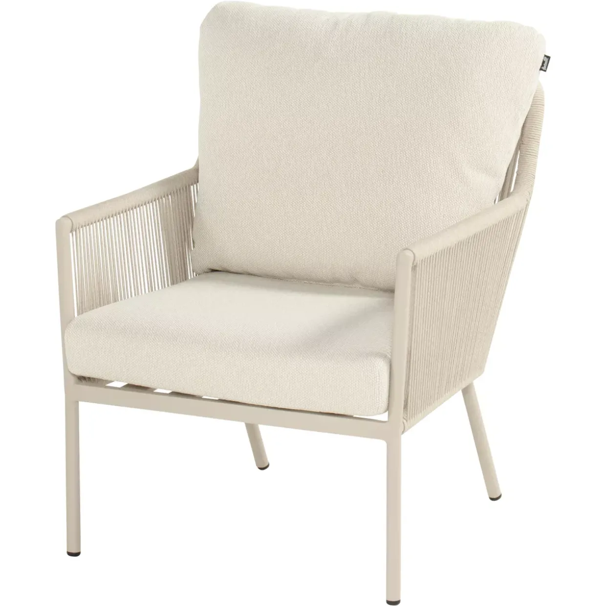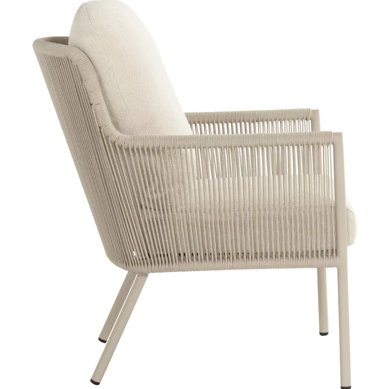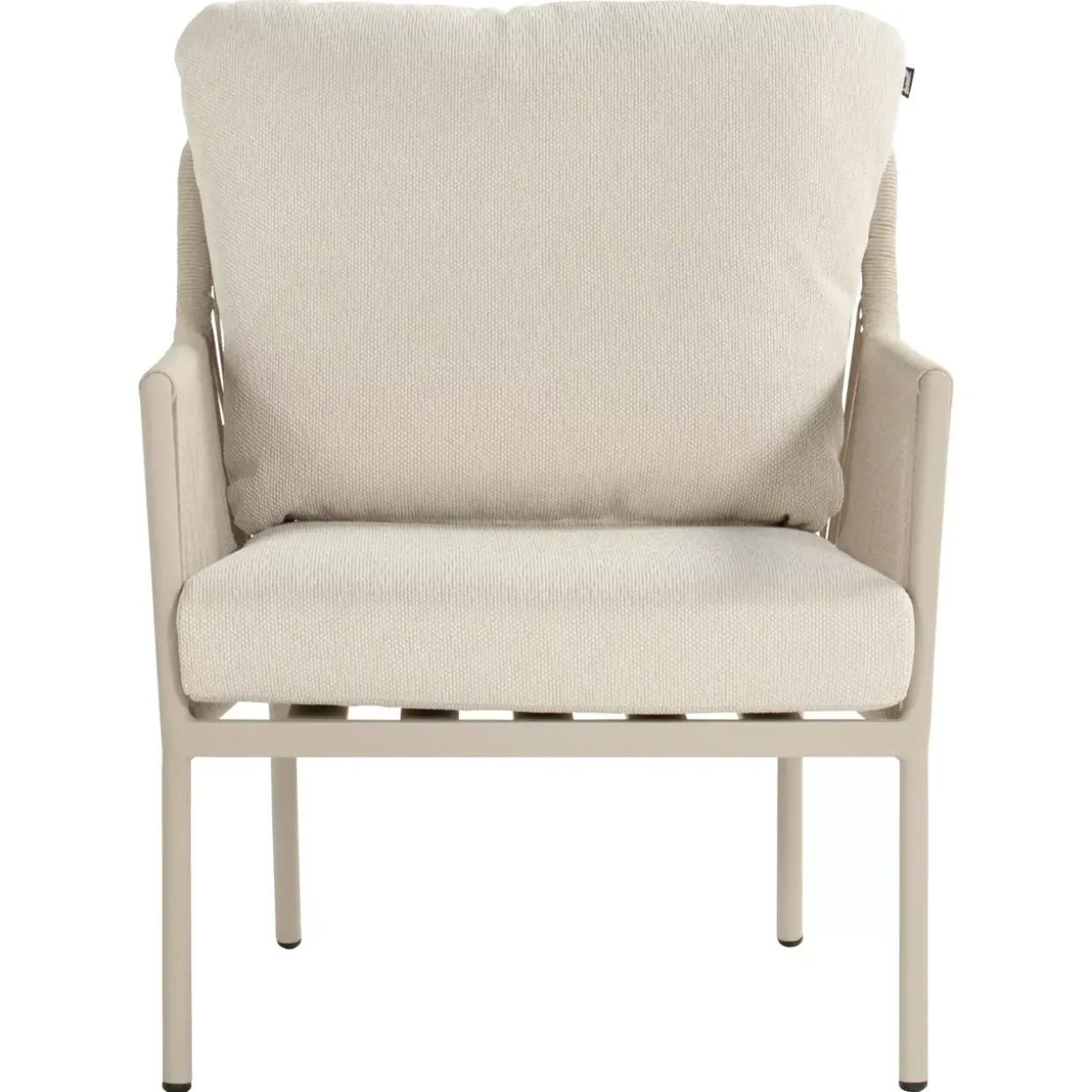 Ein Hauch von Cottage-Stil kombiniert mit moderner Eleganz – der Gartensessel in Beige verkörpert eine zeitlose Ästhetik. Die harmonische Verbindung aus Textil und Aluminium verleiht ihm nicht nur eine ansprechende Optik, sondern auch eine bemerkenswerte Stabilität. Mit einem robusten 4-Fußgestell ausgestattet, bietet dieser Sessel eine solide Basis für entspannte Stunden im Freien.Arm- und Rückenlehnen aus Rope sind das Highlight dieses Möbels und sorgen für ein angenehmes Sitzgefühl, das durch recycelte Weatherready Kissen zusätzlich gesteigert wird. Diese Kissen sind nicht nur umweltfreundlich, sondern auch speziell dafür entwickelt, den wechselnden Wetterbedingungen zu trotzen, ohne an Komfort einzubüßen.Pflegeleichtigkeit ist ein weiterer Vorteil dieses Gartensessels. Die Materialkombination aus Textil und Aluminium macht die Reinigung einfach und unkompliziert, sodass Sie mehr Zeit haben, die schönen Momente im Garten zu genießen. Aluminium, bekannt für seine Leichtigkeit und Korrosionsbeständigkeit, stellt sicher, dass der Sessel langlebig ist und über Jahre hinweg seinen Charme behält.Ein Gartensessel, der mit seiner Funktionalität und seinem Design überzeugt, bietet die perfekte Ergänzung für jedes Outdoor-Ambiente. Tauchen Sie ein in luxuriösen Komfort und genießen Sie die Schönheit der Natur in vollen Zügen.
