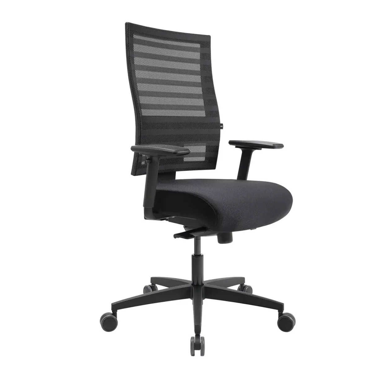 Ein beeindruckendes Merkmal des WorkArt Drehstuhls ist die Rückenlehne mit atmungsaktivem Netzbezug, die für eine angenehme Luftzirkulation sorgt und somit langanhaltenden Sitzkomfort gewährleistet. Die moderne Ästhetik in elegantem Schwarz fügt sich nahtlos in jedes Büroambiente ein und verleiht Ihrem Arbeitsraum einen Hauch von Stil und Klasse.