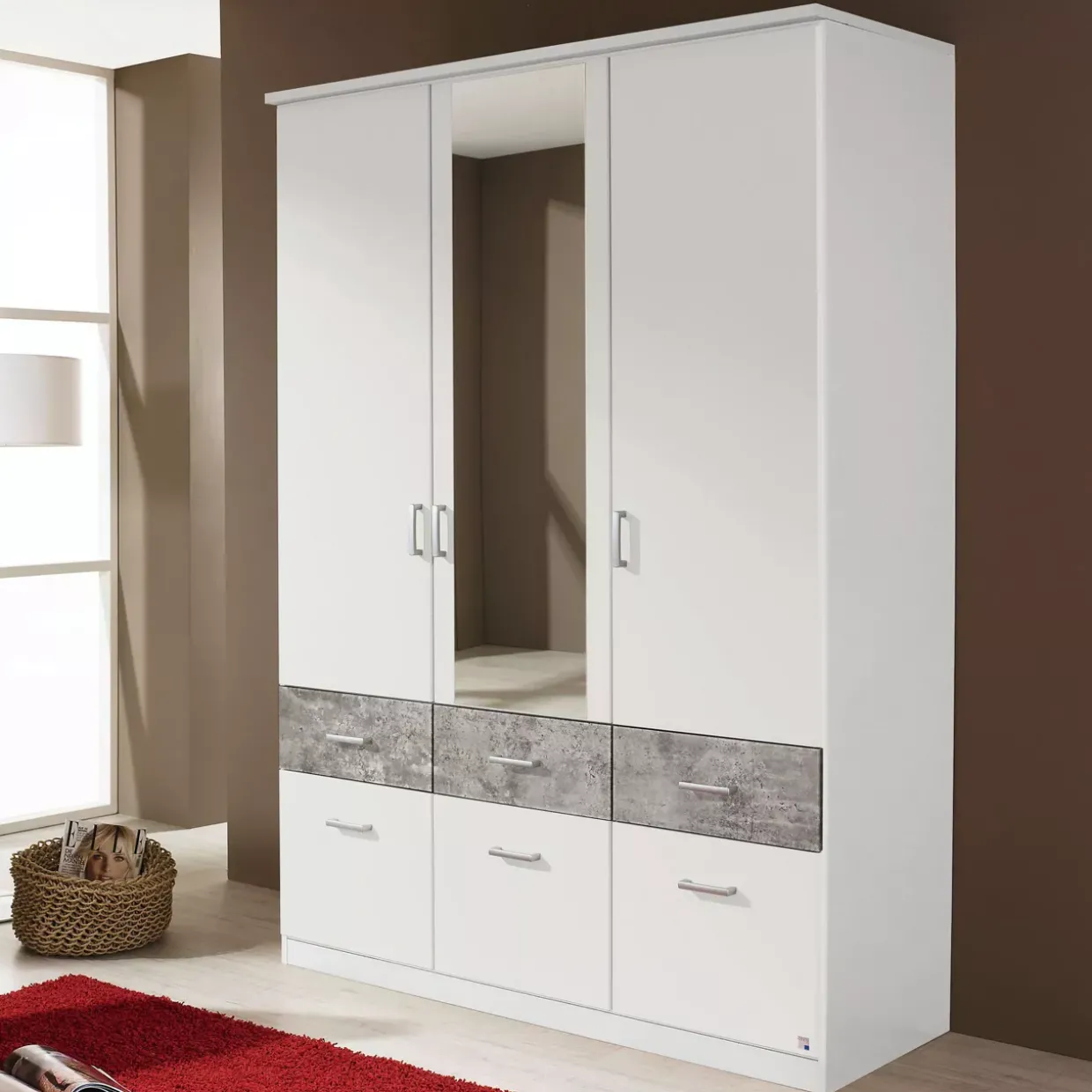 Der Oberkranz des Bremen Extra Modells verleiht diesem Möbelstück eine elegante Note. Die moderne Gestaltung in Weiß oder in einer Kombination aus Weiß und Grau macht es zu einem zeitlosen Begleiter in jedem Raum. Diese Drehtürenschränke sind aus hochwertigem Holzwerkstoff gefertigt, was sowohl für Langlebigkeit als auch für eine ansprechende Optik sorgt.