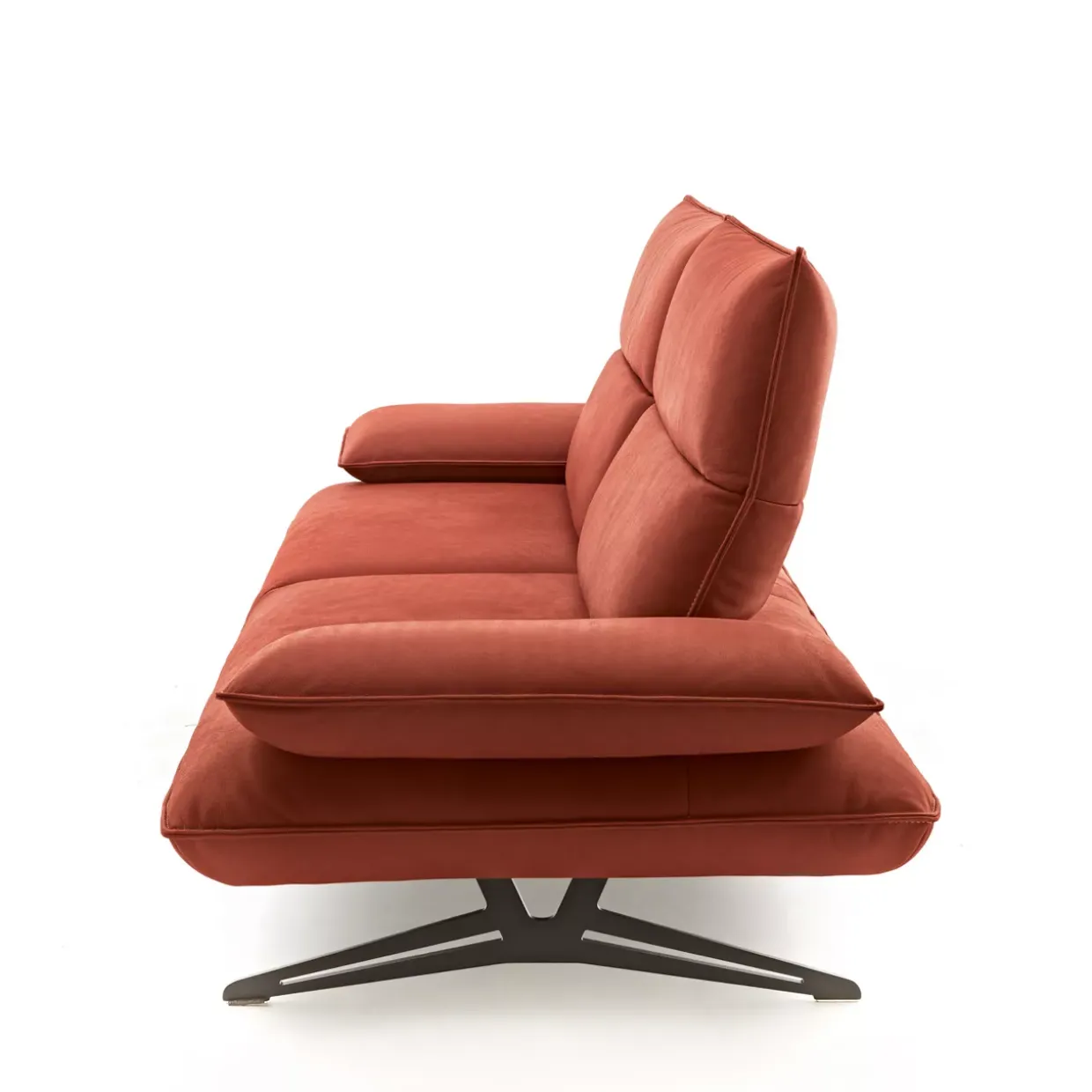 Ausziehbar bis zu beeindruckenden 138 cm, die Polstergarnitur Caio vereint modernes Design mit Funktionalität. In einem harmonischen Zusammenspiel aus Leder und Metall präsentiert sich dieses Möbelstück in der Farbe India Chilli. Der Kontrastfaden in Beige und die Struktur in Schwarz matt schaffen eine elegante und zeitlose Ästhetik.