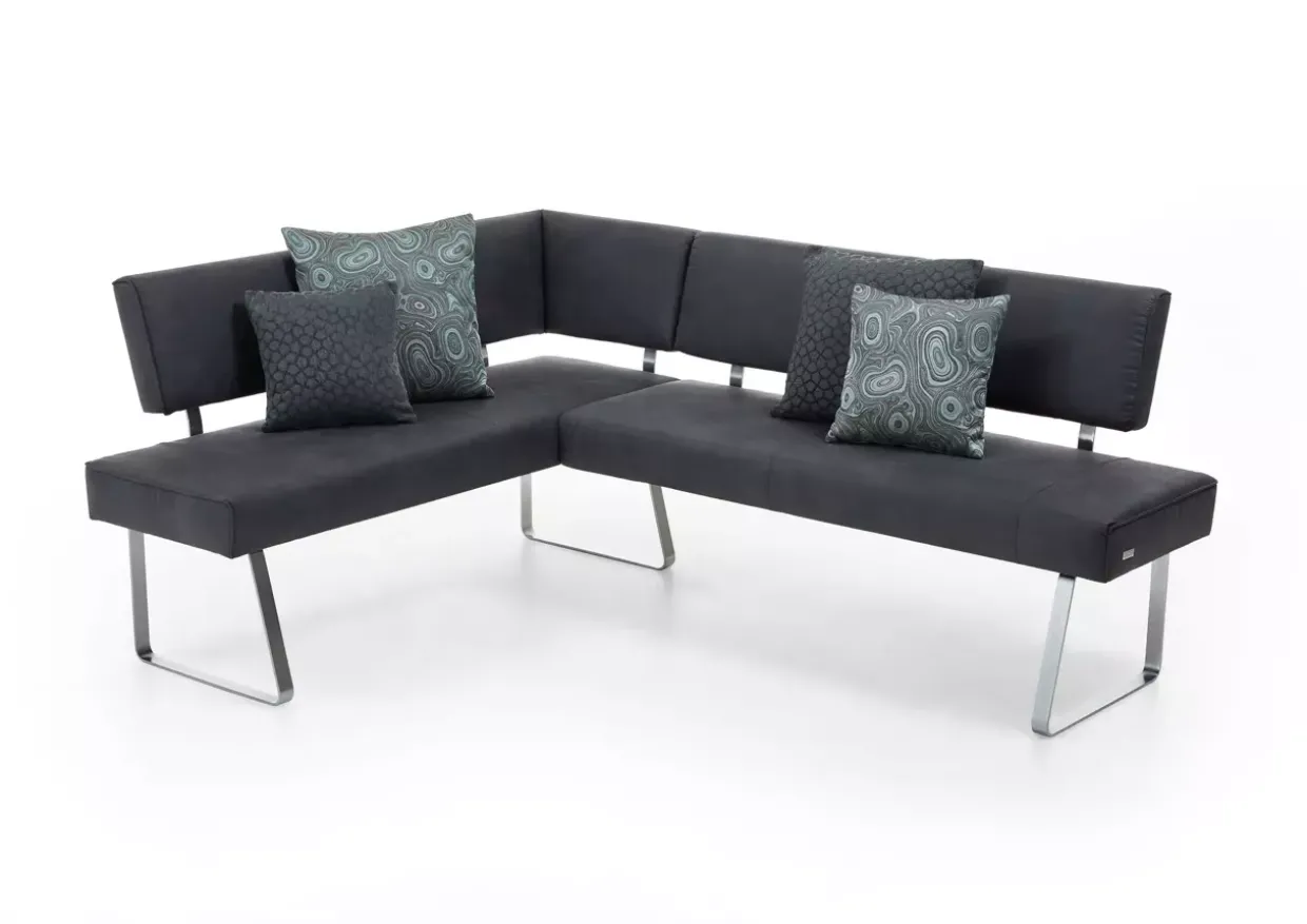 komfortable Sitzecke Farbton: Bezug anthrazit / Gestell Edelstahloptik Größe: 169x215cm Material: Gestell Metall / Bezug Stoff Stil: Modern Fußform: Kufe bestehend aus: 1 Eckbank Highlights