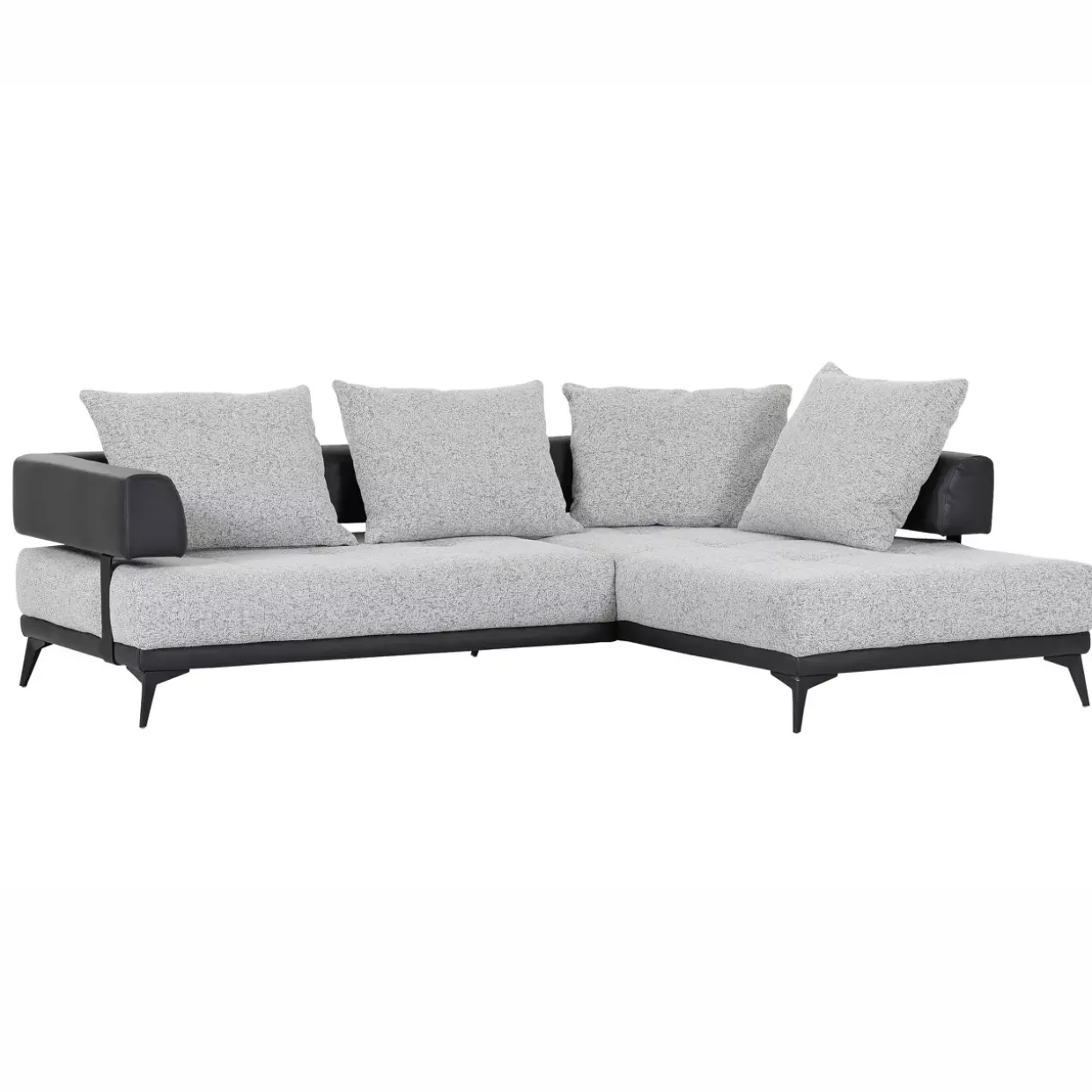 In einem modernen Stil gehalten, vereint das Conville Ecksofa mit Ottomane zeitlose Eleganz und praktischen Komfort. Die harmonische Farbpalette in dunkelgrauen und hellgrauen Dessins sowie klassischem Schwarz verleiht jedem Wohnraum eine stilvolle Atmosphäre. Vielseitigkeit und Robustheit bietet das Zusammenspiel aus Stoff, Holz und Metall, was dem Ecksofa eine stabile und langlebige Struktur verleiht.