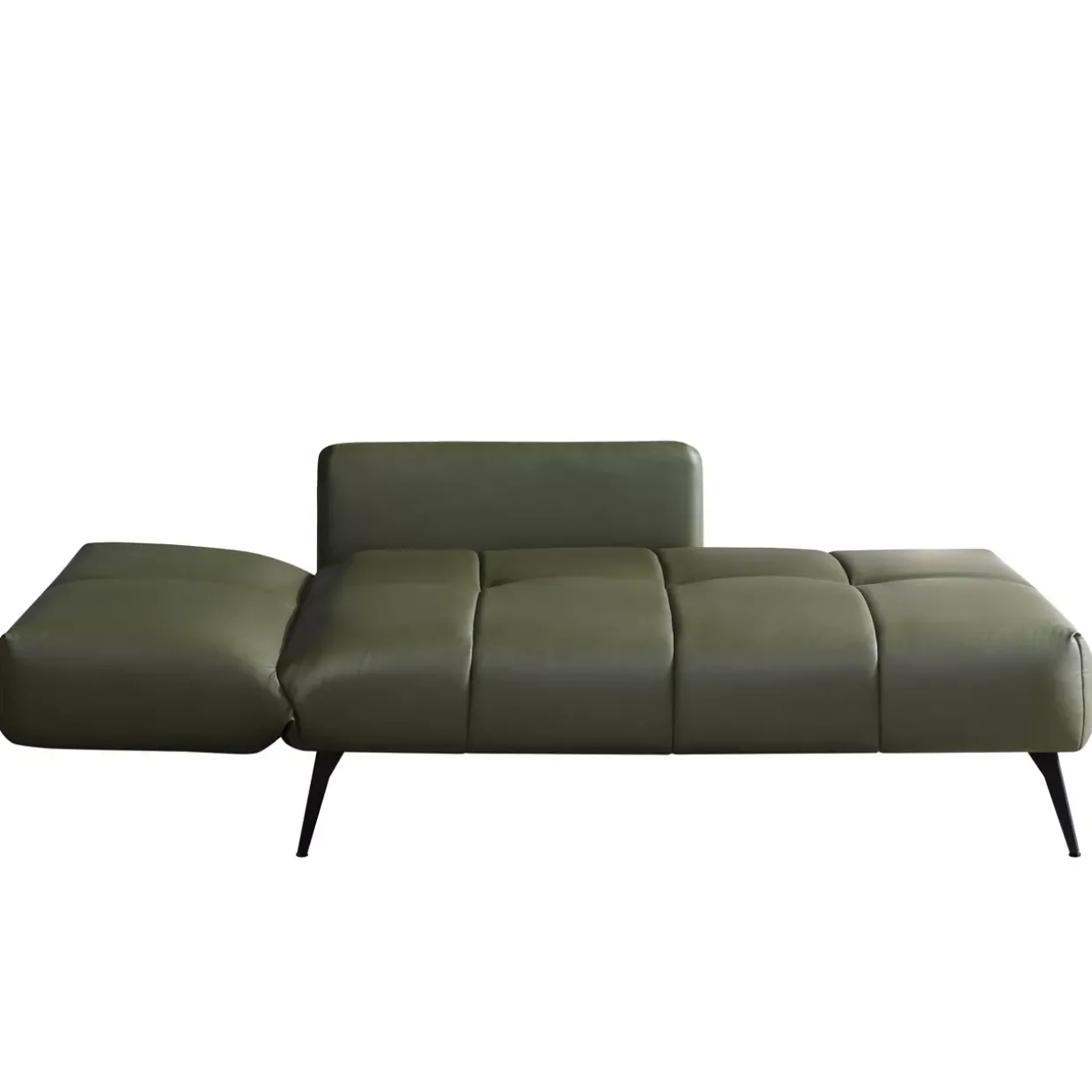Ein Nierenkissen in der Größe 70×30 cm sorgt für zusätzlichen Komfort und Eleganz. Die Einzelliege im modernen Stil vereint Funktionalität mit Ästhetik und passt perfekt in jedes zeitgemäße Interieur. Der strukturierte grüne Bezug, kombiniert mit Elementen in Kunstlederoptik, verleiht dem Möbelstück eine harmonische und stilvolle Ausstrahlung.