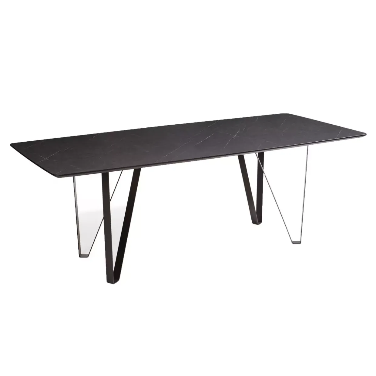 Eleganz trifft auf Funktionalität im Esstisch Calimera. Die moderne Ästhetik dieses Tisches wird durch seine stilvolle Kombination aus schwarzem Metall und Marmara Marmor unterstrichen. Ein echtes Highlight für jede stilbewusste Einrichtung. Die auffällige Spangenform der Tischfüße verleiht nicht nur Stabilität, sondern auch einen Hauch von Raffinesse.