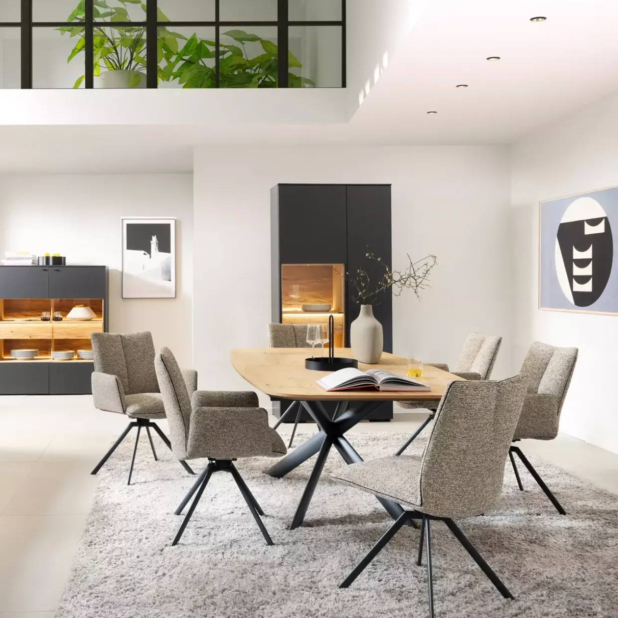 Ein Hauch von Eleganz durchzieht jedes Zuhause mit einem Esstisch in anthrazit matt und Wildeiche hell geölt. Die Kombination aus modernem Stil und natürlichen Materialien wie Eiche, Metall und Holzwerkstoff schafft eine harmonische Atmosphäre in Ihrem Essbereich. Geschickt eingebunden ist das Spider-Gestell, das nicht nur für Stabilität sorgt, sondern auch ein optisches Highlight darstellt.