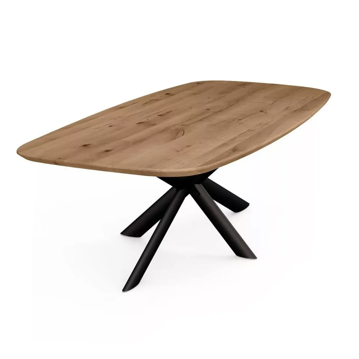 Eine beeindruckende Mischung aus Holz und Metall sorgt dafür, dass dieser Tisch sowohl Stabilität als auch stilvolle Leichtigkeit ausstrahlt. Die markante Maserung der Wildeiche Bianco bringt Wärme in den Raum und schafft eine einladende Atmosphäre. Die schwarze Metallkonstruktion bietet dazu einen spannenden Kontrast und unterstreicht den zeitgemäßen Stil.