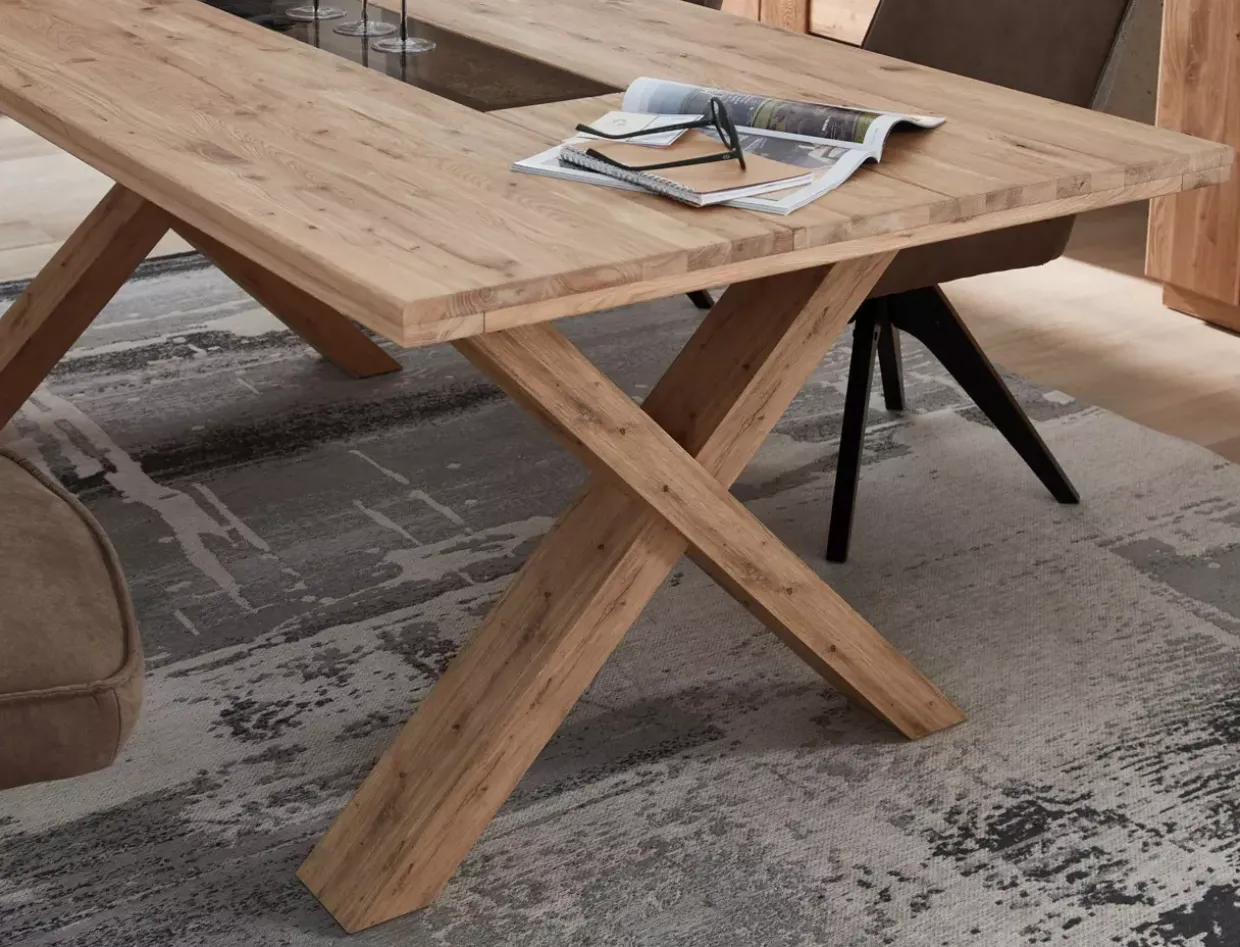 Der X-Fuß des Tisches bildet einen stabilen und zugleich ästhetischen Unterbau, der das moderne Design ergänzt. Dadurch entsteht eine spannende Dynamik, die das Ambiente in Ihrem Esszimmer bereichert. Der Esstisch ist nicht nur ein funktionales Möbelstück, sondern auch ein Statement für Stilbewusstsein und Qualität.