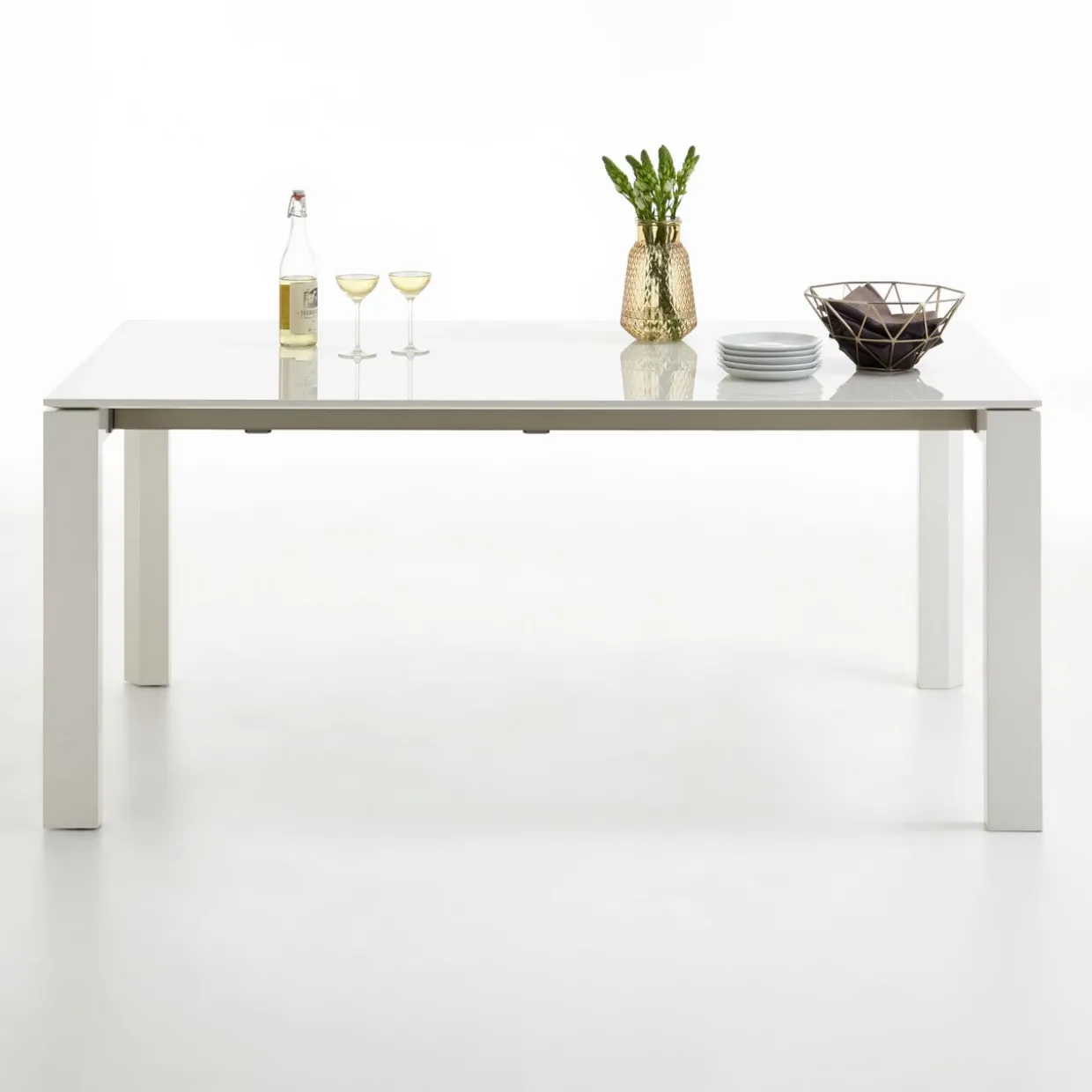 | Color | Gestell Lack Hochglanz Leinenweiß / Tischplatte Lack Hochglanz Leinenweiß |