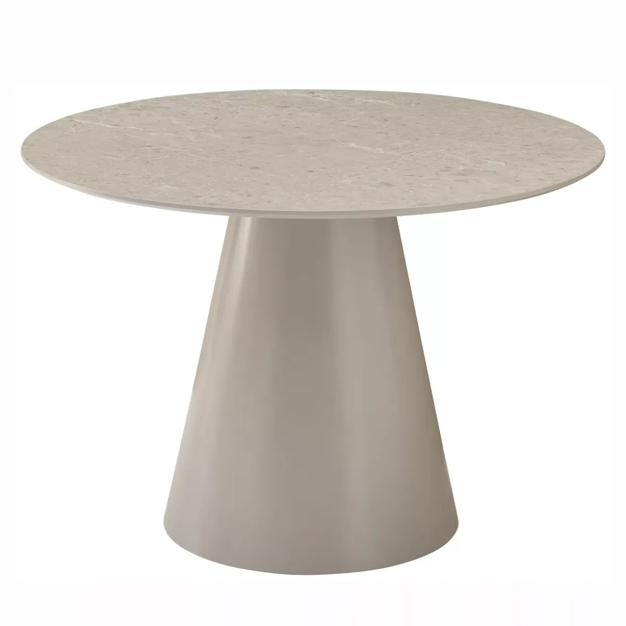 Die graue, matte Steinoptik verleiht dem Tisch eine ansprechende Ästhetik, die sich harmonisch in verschiedene Einrichtungsstile einfügt. Ob in einer modernen Wohnung oder in einem klassisch eingerichteten Esszimmer – dieser Tisch zieht die Blicke auf sich. Die solide Säulenfußform sorgt nicht nur für Stabilität, sondern gibt dem Möbelstück auch einen Hauch von Raffinesse.