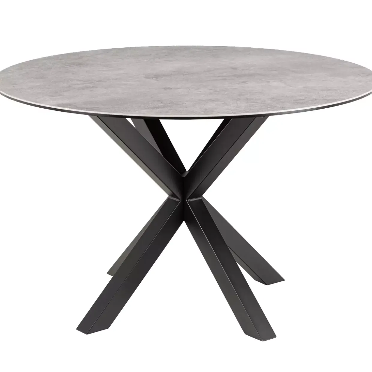 Der Kreuzfuß aus Metall sorgt nicht nur für Stabilität, sondern auch für einen markanten Look, der Blicke auf sich zieht. Keramik als Material der Tischplatte bietet nicht nur optische Vorzüge, sondern ist auch besonders pflegeleicht und widerstandsfähig gegen Kratzer und Hitze.