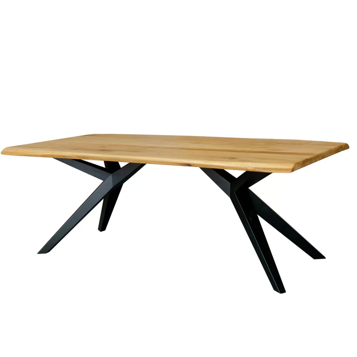 Ein Design-Gestell, das ins Auge fällt: Der Tisch TI-0175 vereint modernen Stil mit funktionalem Design. Die rechteckige Form bietet vielseitige Einsatzmöglichkeiten in jedem Raum. Die harmonische Kombination aus metallischen Akzenten und der warmen Anmutung von Wildeiche verleiht dem Tisch ein einzigartiges Erscheinungsbild. Besonders hervorzuheben ist die gedrehte Tischkante, die dem Möbelstück eine dynamische Note verleiht.