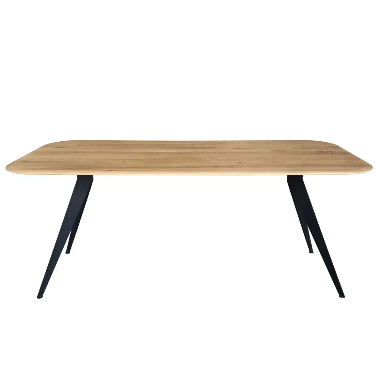 Die Tischplatte aus Wildeiche ist geölt und bringt die natürliche Maserung des Holzes besonders zur Geltung. Diese Behandlung sorgt nicht nur für eine ansprechende Optik, sondern schützt das Holz auch vor alltäglichen Einflüssen. Das 4-Fußgestell aus Metall bietet einen stabilen Stand und harmoniert perfekt mit der Tischplatte, wodurch ein stimmiges Gesamtbild entsteht.