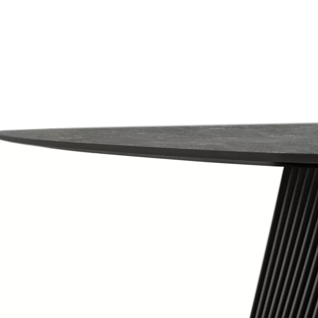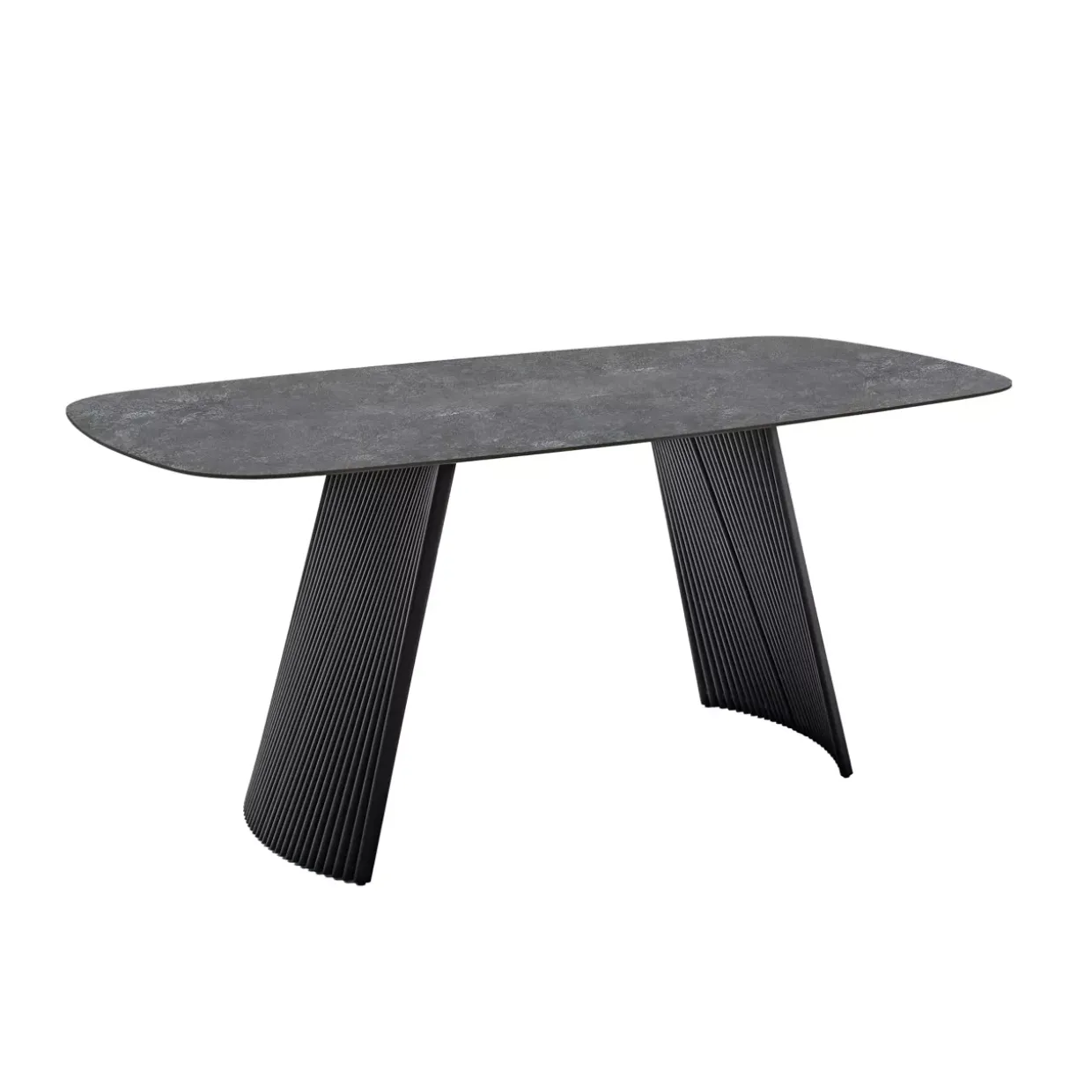 Keramik als Highlight prägt den Tobelo Esstisch und verleiht ihm eine zeitlose Eleganz. Mit einem Durchmesser von 11 mm beeindruckt die Keramikoberfläche durch ihre Robustheit und Widerstandsfähigkeit. Der moderne Stil des Tisches fügt sich harmonisch in verschiedene Wohnkonzepte ein und bietet eine perfekte Balance zwischen Funktionalität und Ästhetik.Vielseitigkeit zeigt sich in der Farbauswahl. Schwarz und Weiß schaffen sowohl Kontraste als auch harmonische Übergänge, je nach Vorliebe und Raumgestaltung. Diese Farbpalette ermöglicht es, den Tisch sowohl in minimalistisch gehaltenen als auch in opulenteren Räumen zu platzieren.Metall als Materialgrundlage verspricht Stabilität und Langlebigkeit. Die Kombination aus Metall und Keramik ergibt nicht nur ein modernes, sondern auch ein pflegeleichtes Möbelstück. Der Esstisch ist somit nicht nur ein optischer Hingucker, sondern auch ein praktischer Begleiter im Alltag.Einzigartige Details und hochwertige Materialien machen diesen Esstisch zu einem unverzichtbaren Bestandteil jedes modernen Essbereichs. Die klare Formensprache und das Zusammenspiel der Materialien schaffen eine Atmosphäre, die sowohl für gesellige Zusammenkünfte als auch für gemütliche Abendessen mit der Familie geeignet ist. Erleben Sie die perfekte Symbiose aus Design und Funktionalität in Ihrem Zuhause.