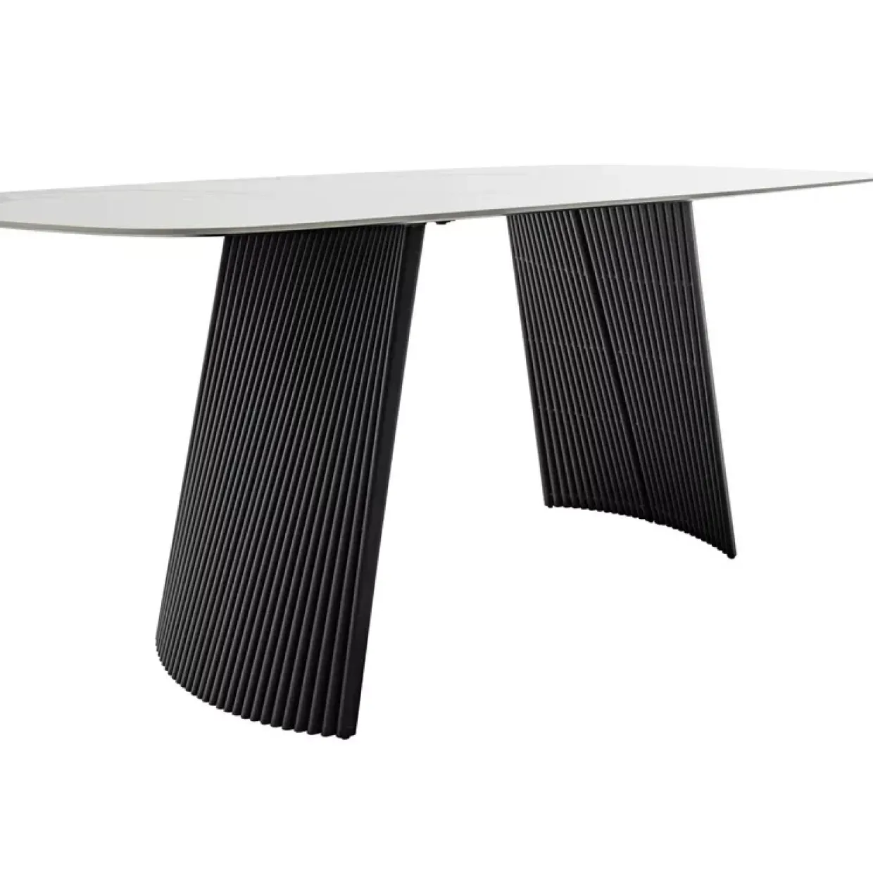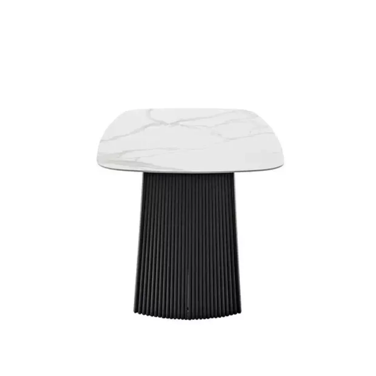 Schwarz matt lackiert und weiß marmoriert – eine faszinierende Farbkomposition, die den Tobelo Esstisch zu einem wahren Blickfang in jedem modernen Wohnbereich macht. Das Zusammenspiel von kühlem Metall und eleganter Keramik vereint Robustheit mit stilvoller Ästhetik und schafft einen einzigartigen Ort für gesellige Runden und kulinarische Erlebnisse.Der Tobelo Esstisch überzeugt nicht nur durch seine optischen Reize. Die hochwertige Verarbeitung der Materialien verspricht Langlebigkeit und Stabilität, sodass er den Anforderungen des Alltags problemlos standhält. Die Kombination aus modernem Design und funktionaler Qualität macht diesen Tisch zu einem idealen Begleiter für jedes Zuhause, das Wert auf zeitgemäße Einrichtung legt.Eine harmonische Ergänzung für die verschiedensten Wohnstile, fügt sich der Tobelo Esstisch nahtlos in unterschiedliche Raumkonzepte ein. Ob als zentrales Element im Esszimmer oder als stilvolle Ergänzung im offenen Wohnbereich – seine Präsenz ist unverkennbar und einladend. Lassen Sie sich von der klaren Linienführung und den ästhetischen Details inspirieren, die diesen Esstisch zu einem unverzichtbaren Bestandteil moderner Wohnkultur machen. Ein Möbelstück, das nicht nur durch seine Funktionalität, sondern auch durch seine zeitlose Eleganz überzeugt.
